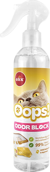 ELIX Oops Spray do Kuwet (Kot) Neutralizer & Fragrance300 mlZalety:✅ Naturalne ekstrakty ziołowe,✅ Usuwa nieprzyjemny zapach,✅ Efekt zniechęcający dla zwierząt.Opis zapachuNuty głowy: pomarańcza,