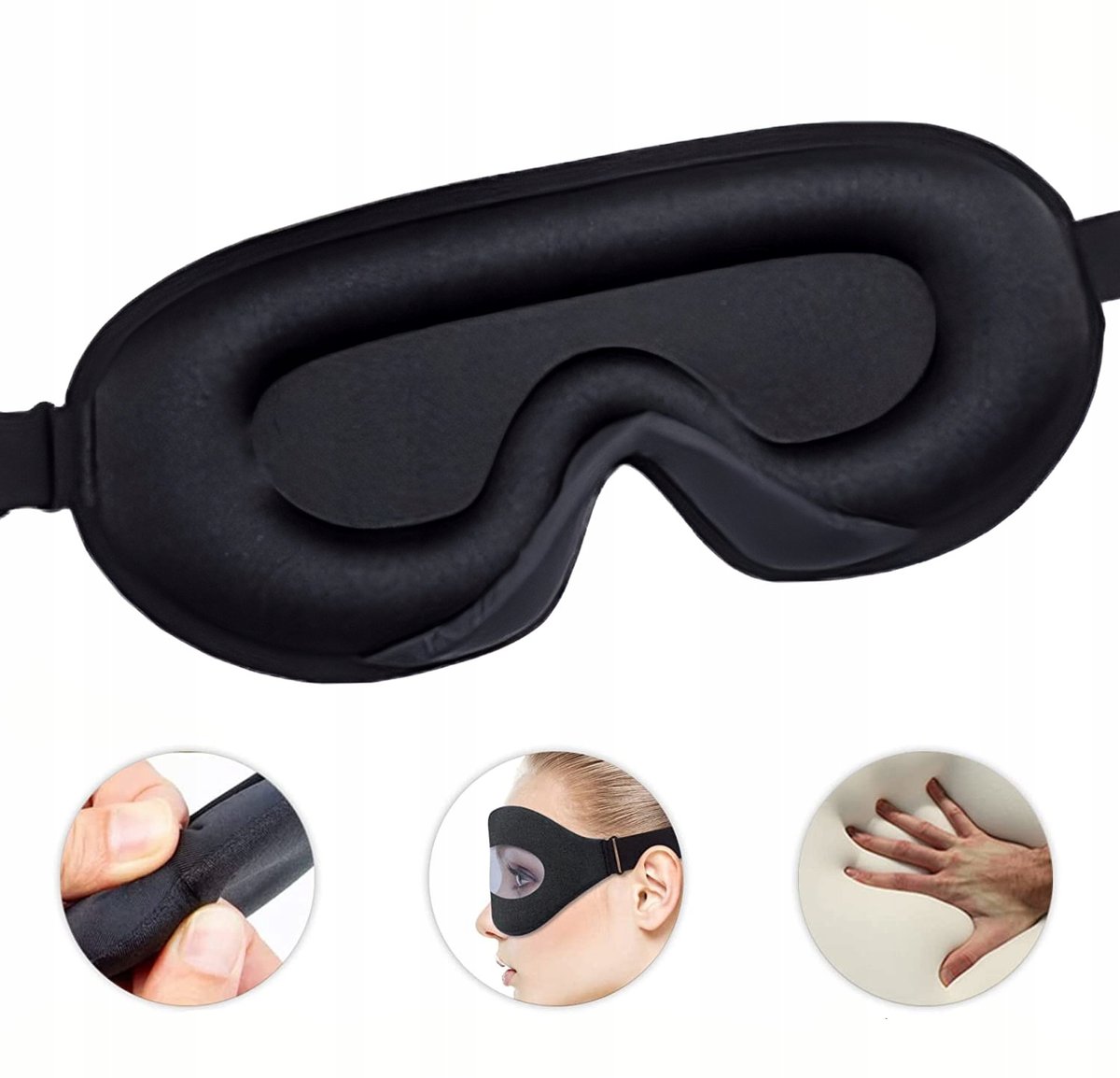 ➡️ Forma 3D sprawiają, że dopasowuje się do Twojego kształtu głowy, dodatkowo tak wyprofilowana że nie naciska oczu i idealnie izoluje światło co odróżnia tą opaskę od innych.