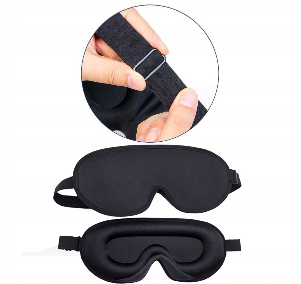 Profesjonalna czarna opaska na oczy 3D PREMIUM z regulowaną gumką. NIE UCISKA!