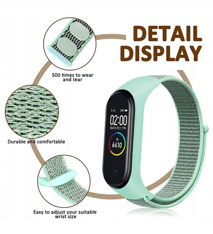 Opaska Nylonowa na rzep Smart Band MI BAND Mi4/Mi5/Mi6 miętowy– specyfikacja