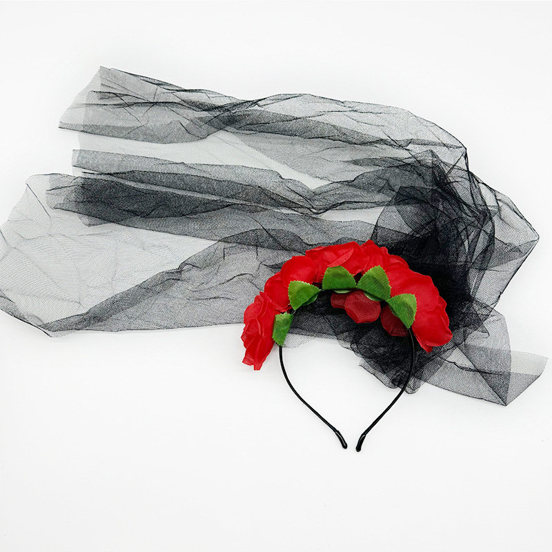 Do wianka doczepiony jest czarny welon nadający mroczny charakter