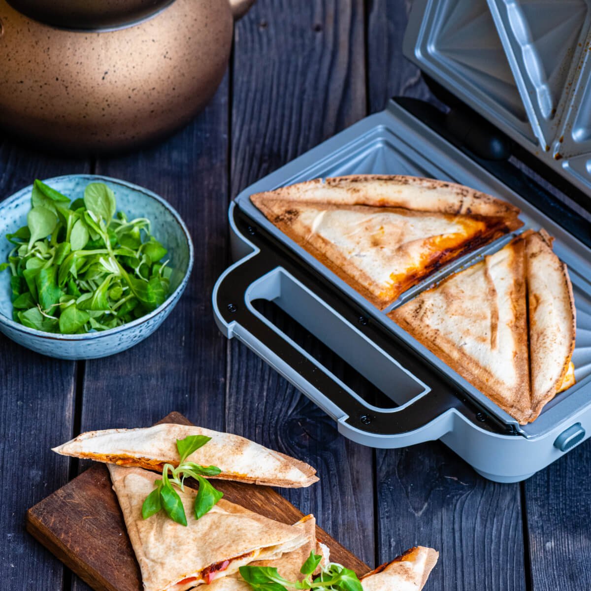 Opiekacz w przeciwieństwie do tostera, ma opcję poziomego wkładania dwóch kromek wraz z dodatkami. Najbardziej znany jest opiekacz do kanapek, jednak istnieją również inne warianty tego urządzenia. W zależności od modelu, może on służyć do robienia panini, gofrów czy ciasteczek. Często spotykany jest również uniwersalny opiekacz 3 w 1. BREVILLE VST074X-01 posiada moc 850 W, oraz 2 miejsca do opiekania posiłków.