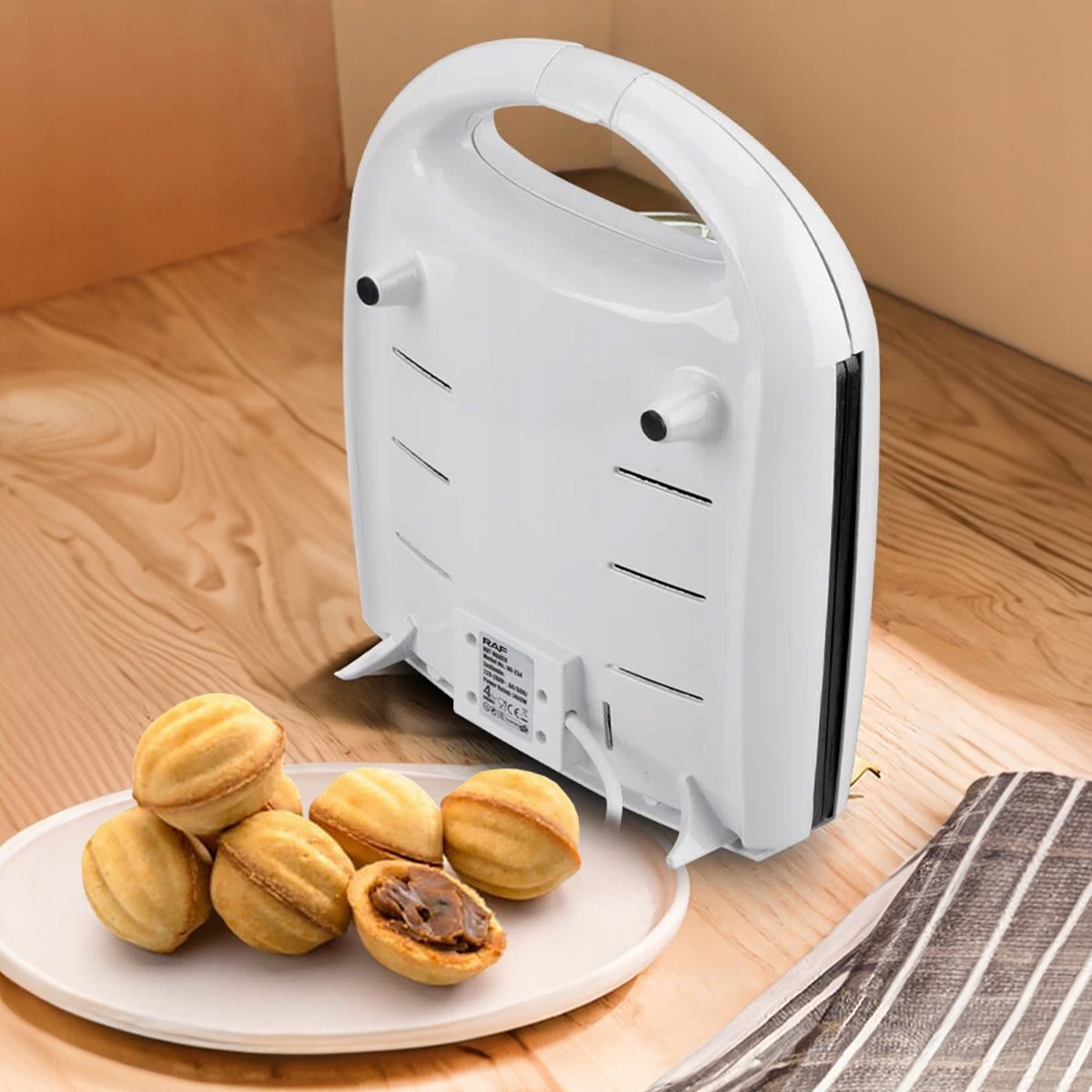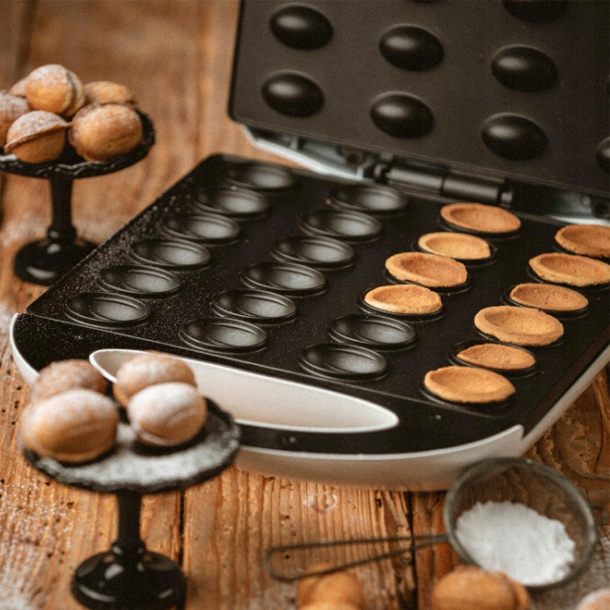Znany również jako opiekacz do wypieku ciasteczek w kształcie orzechów, to urządzenie do przygotowywania małych, kulistych ciasteczek z masy orzechowej.