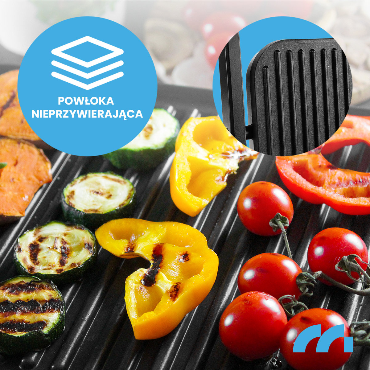 MULTIFUNKCYJNA KONSTRUKCJA - umożliwia zarówno grillowanie soczystych mięs, jak i przygotowanie perfekcyjnie wypieczonych, chrupiących kanapek