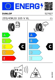 Opony zimowe DUNLOP SP WINTERSPORT 3D w rozmiarze 255/45R20 o indeksie prędkości V (240 km/h) oraz indeksie nośności 105 (925 kg) charakteryzują się etykietą o następujących parametrach: opór toczenia C, przyczepność na mokrej nawierzchni C, poziom hałasu w dB 71.