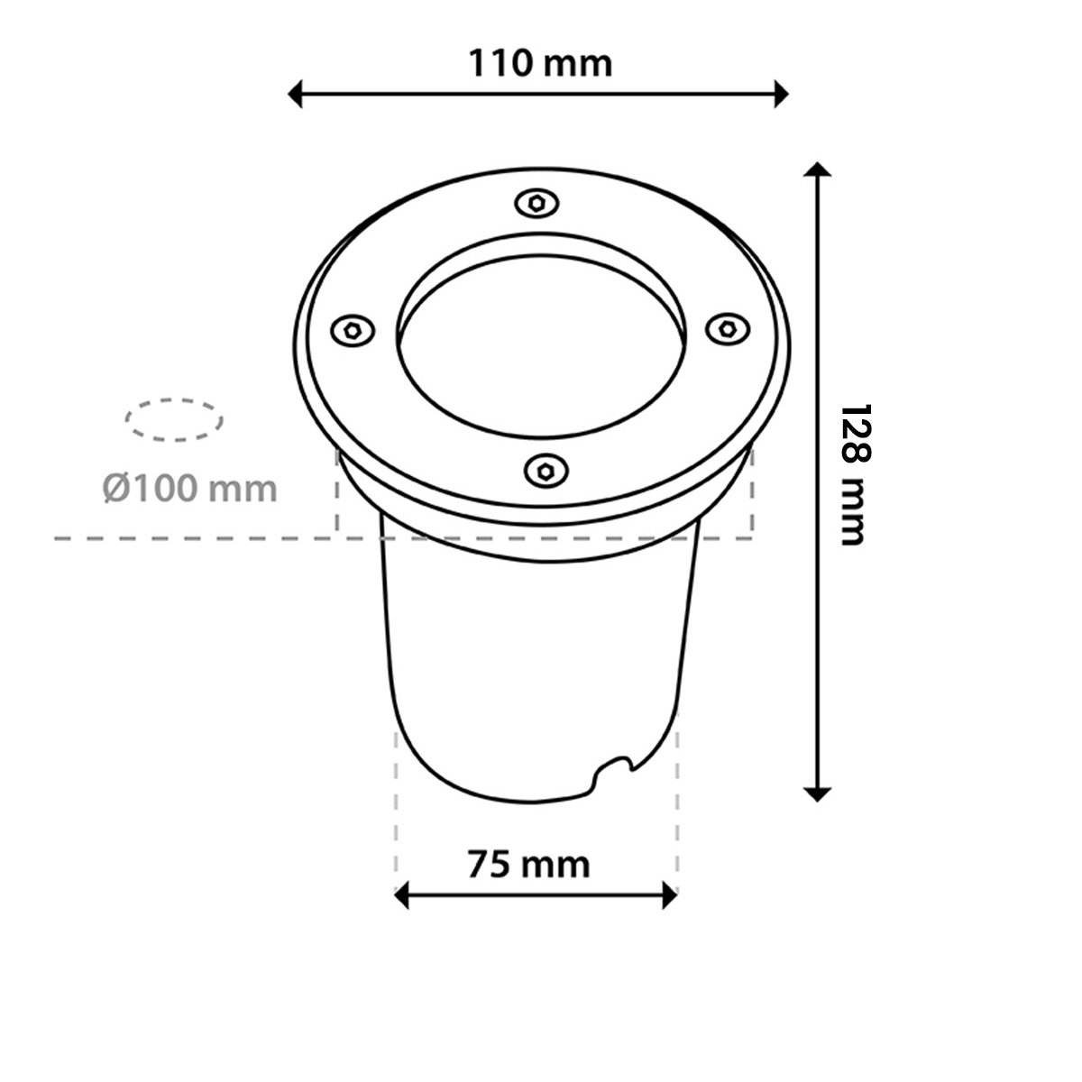 Dodatkowo oprawa sprzedawana jest wraz z korpusem wykonanym z twardego tworzywa sztucznego (PC). Korpus możemy na stałe osadzić w gruncie, a następnie wpuścić i przymocować komfortowo oprawę.