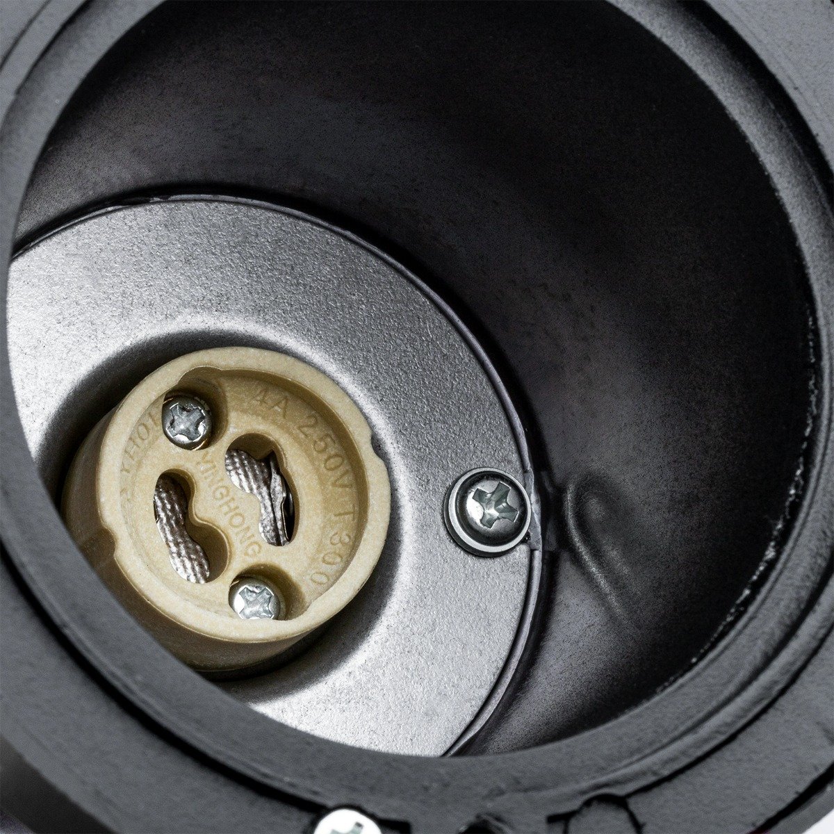 Kostka GU10 umiejscowiona wewnątrz oprawy umożliwia zamocowanie Żarówki w kształcie reflektora o maksymalnej mocy 12W w przypadku żarówki LED oraz 50W w przypadku żarówki halogenowej.