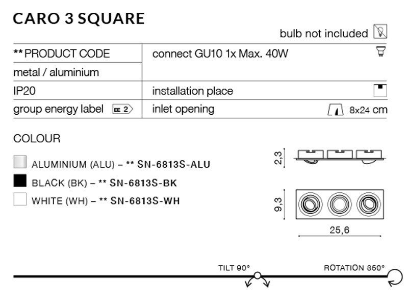| Nazwa: | Oprawa wpuszczana oczko Caro 3 Square AZ2440 Azzardo |