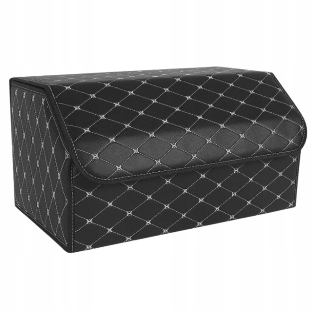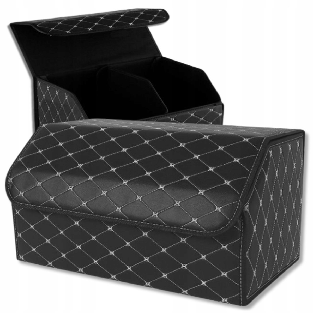 ✅ Postaw na funkcjonalność i styl. Czarny organizer do bagażnika samochodowego w romby to praktyczny pojemnik, który nie tylko porządkuje przestrzeń, ale również nadaje wnętrzu auta luksusowego charakteru.