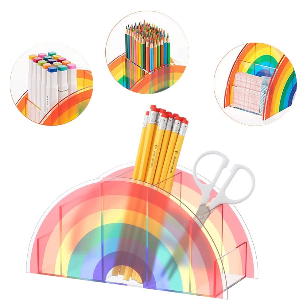 | Nazwa: | Organizer na artykuły papiernicze, przezroczysty pojemnik na ołówki, tęczowy pojemnik na ołówki, akrylowy, z 5 przegródkami, kreatywny kształt tęczy |