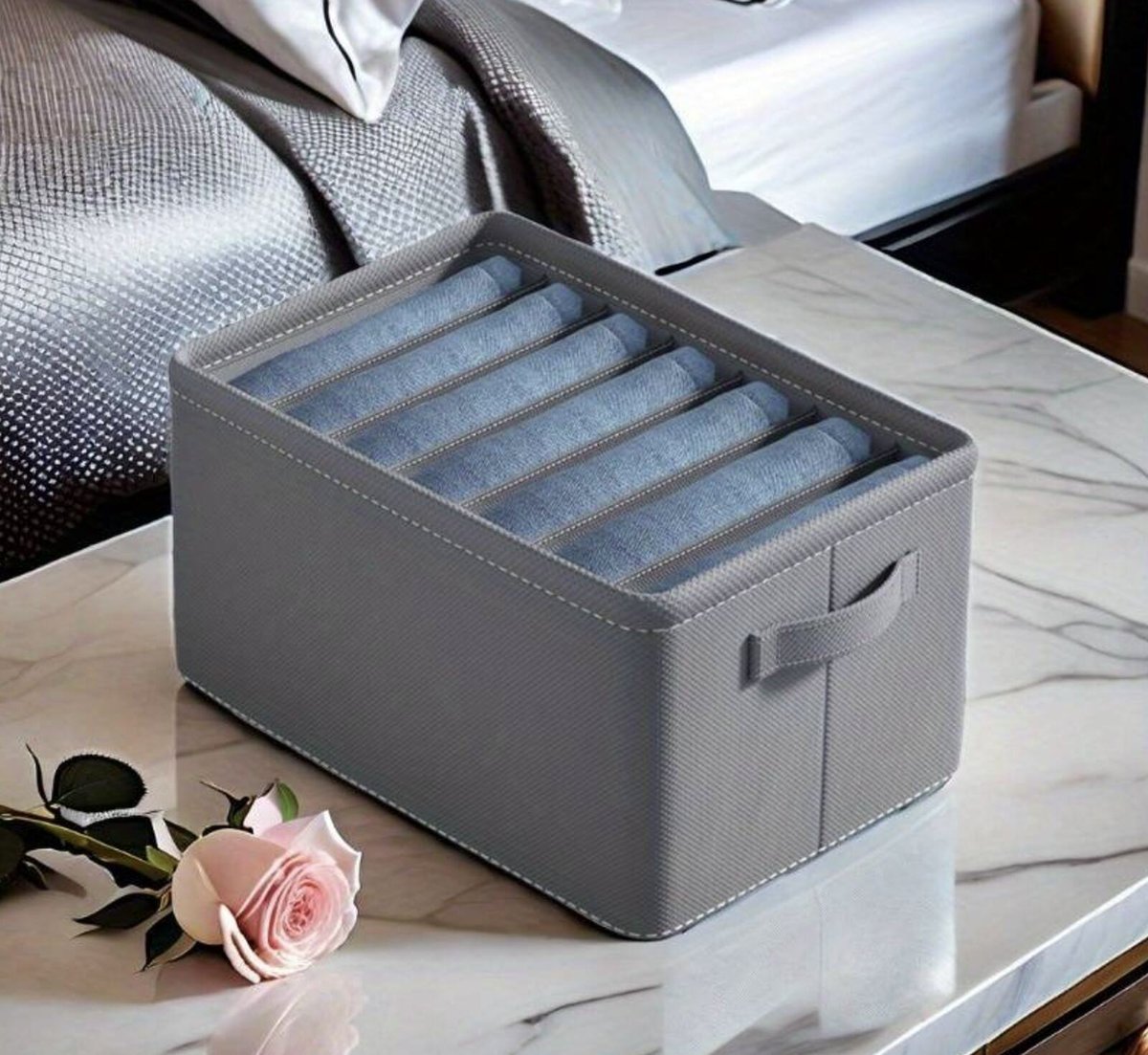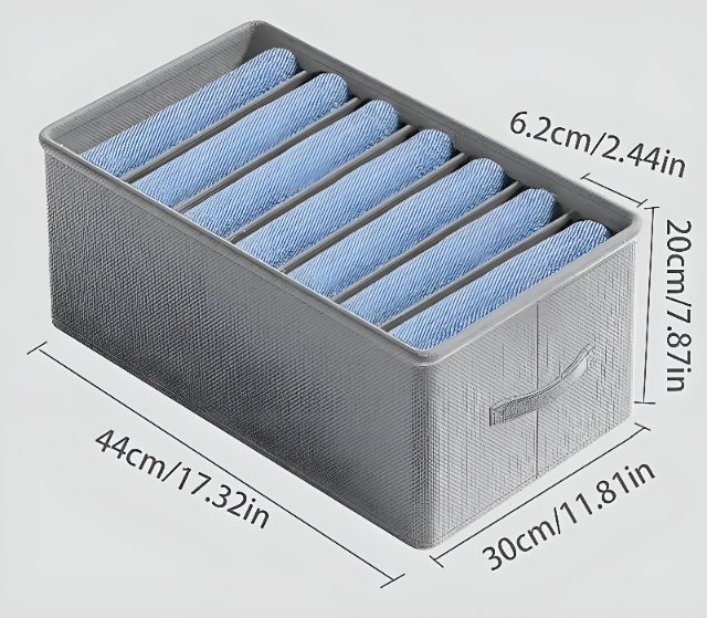 ⚫ Z organizerem uporządkujesz ubrania i bieliznę w szafie✅ Organizer ma usztywnianie boki✅ Łatwo się składa⚫ Mieści się w większej szufladzieWymiary: 44 x 30 x 20 cm➡️ 7 przegródek na ubrania