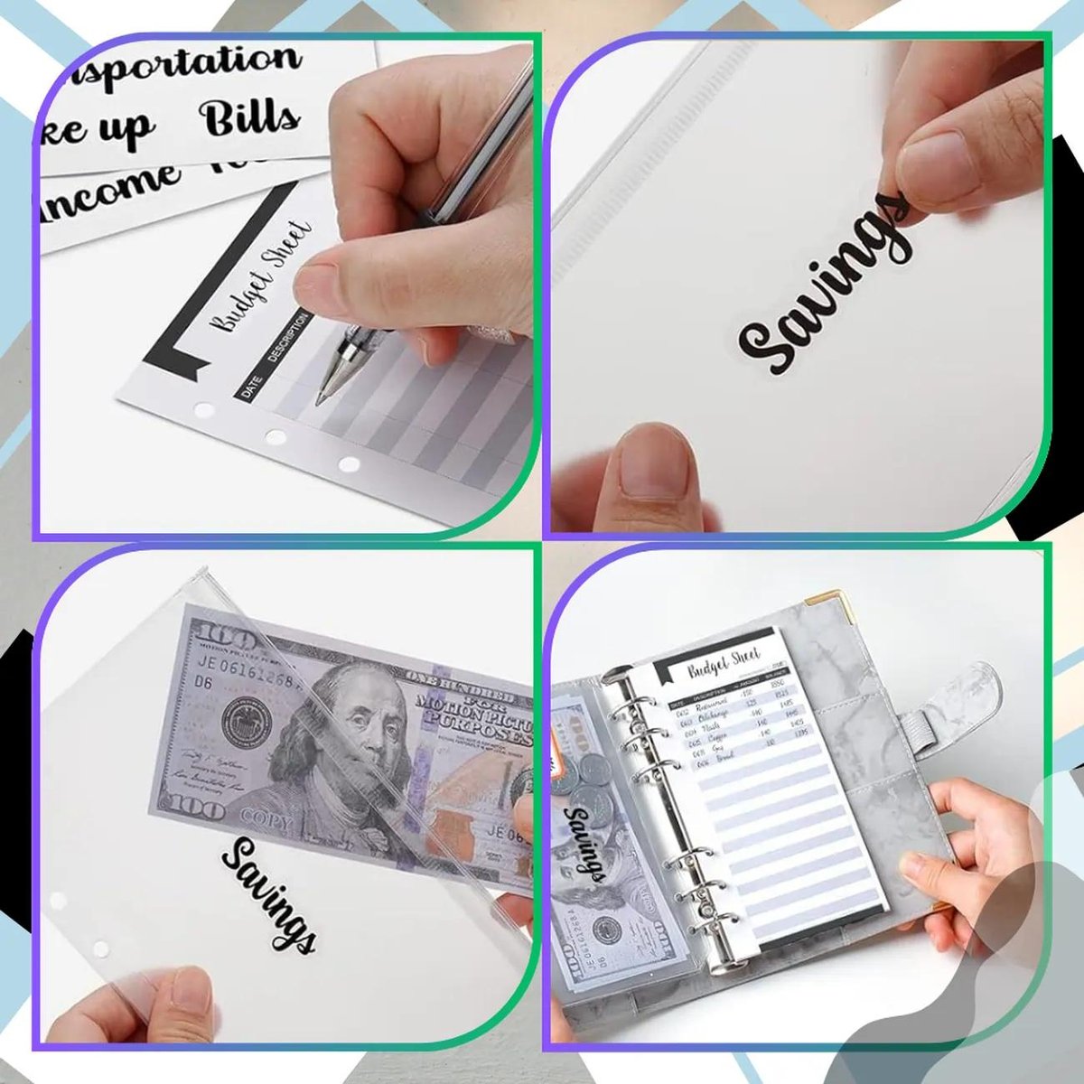 Zestaw zawiera: 12 sztuk przezroczystych kopert strunowych, idealnych do przechowywania pieniędzy, paragonów i rachunków. Każda koperta jest trwała, wodoodporna i łatwa do zamknięcia, co chroni jej zawartość przed uszkodzeniem. 12 sztuk kolorowych kart budżetowych, które pomagają w prowadzeniu szczegółowych zapisków dotyczących wydatków i oszczędności. 2 arkusze naklejek z napisami, ułatwiających kategoryzowanie kopert, takich jak: „Rachunki”, „Edukacja”, „Zdrowie”, „Zakupy” czy „Transport”. 24 kolorowe naklejki prostokątne, które możesz wykorzystać do dodatkowego oznaczania i personalizacji swojego planera.