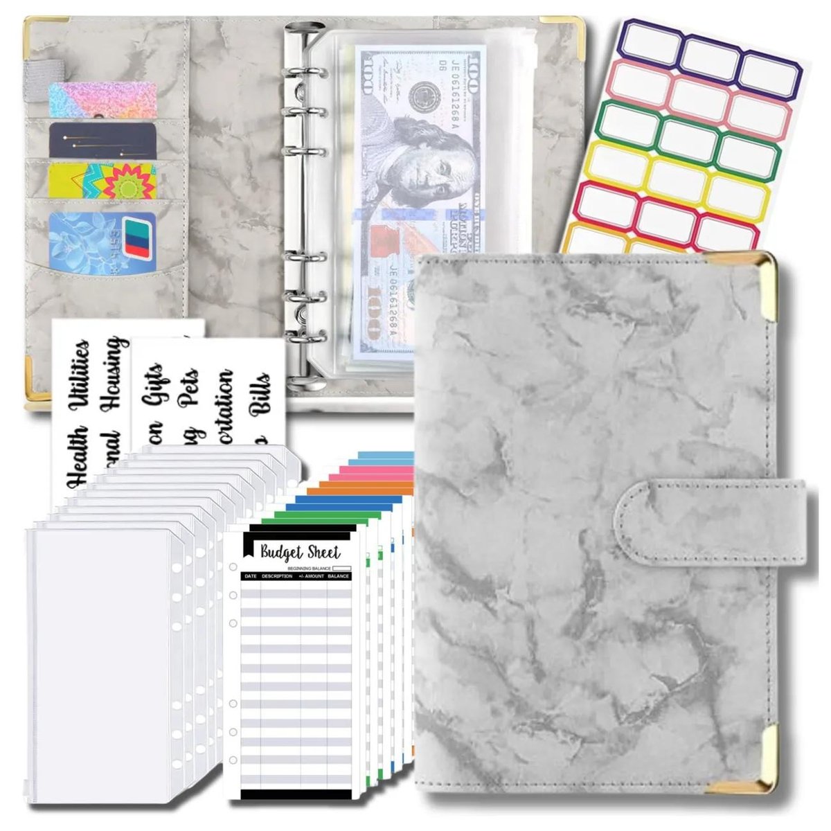 Dlaczego warto wybrać ten planer budżetowy? Kompaktowy rozmiar A6 – wygodny do noszenia w torebce czy plecaku. Praktyczny zestaw – 12 kopert, 12 kart budżetowych, naklejki do organizacji. Funkcjonalność – przegródki na karty, kieszeń na gotówkę, pętelka na długopis. Elegancki design – szara okładka z marmurkowym wzorem i złotymi narożnikami.