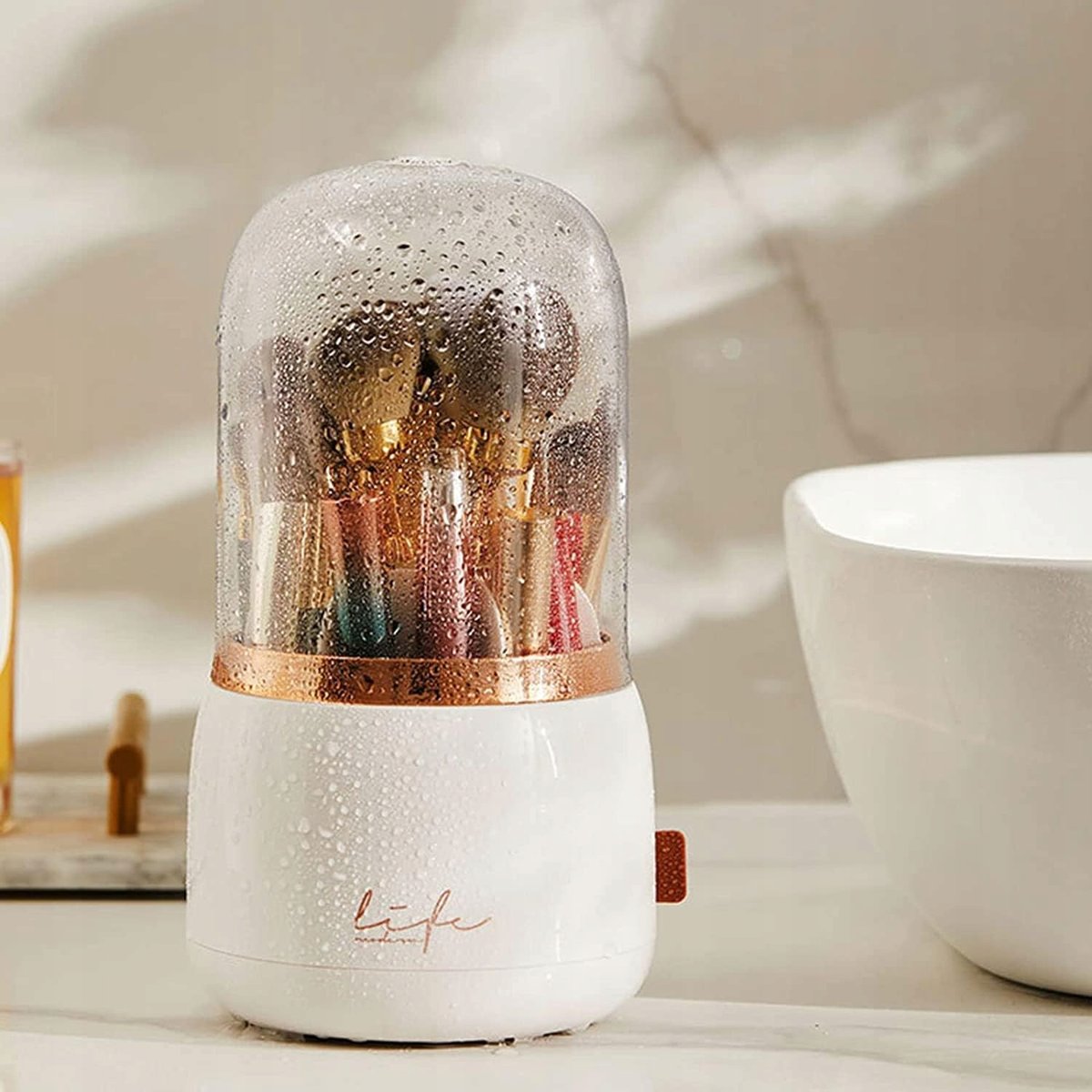 ✅Organizer posiada wygodną osłonę w kształcie kopułki, dzięki czemu uchroni pędzle przed zamoknięciem.