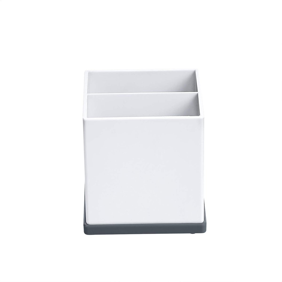 ⭐️ Minimalistyczny design – biały pojemnik z ciemnoszarą podstawą