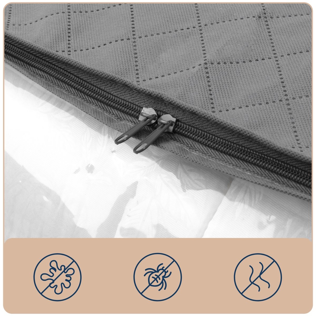 Przechowywane rzeczy w torbach 4CONVY są bezpieczne od kurzu i roztoczy, których jest mnóstwo pod łóżkiem. Pokrowiec wykonany jest z materiału, który jest przewiewny i równocześnie chroni przechowywane przedmioty przed molami, kurzem, brudem i brzydkimi zapachami. Ciesz się świeżością swoich rzeczy.