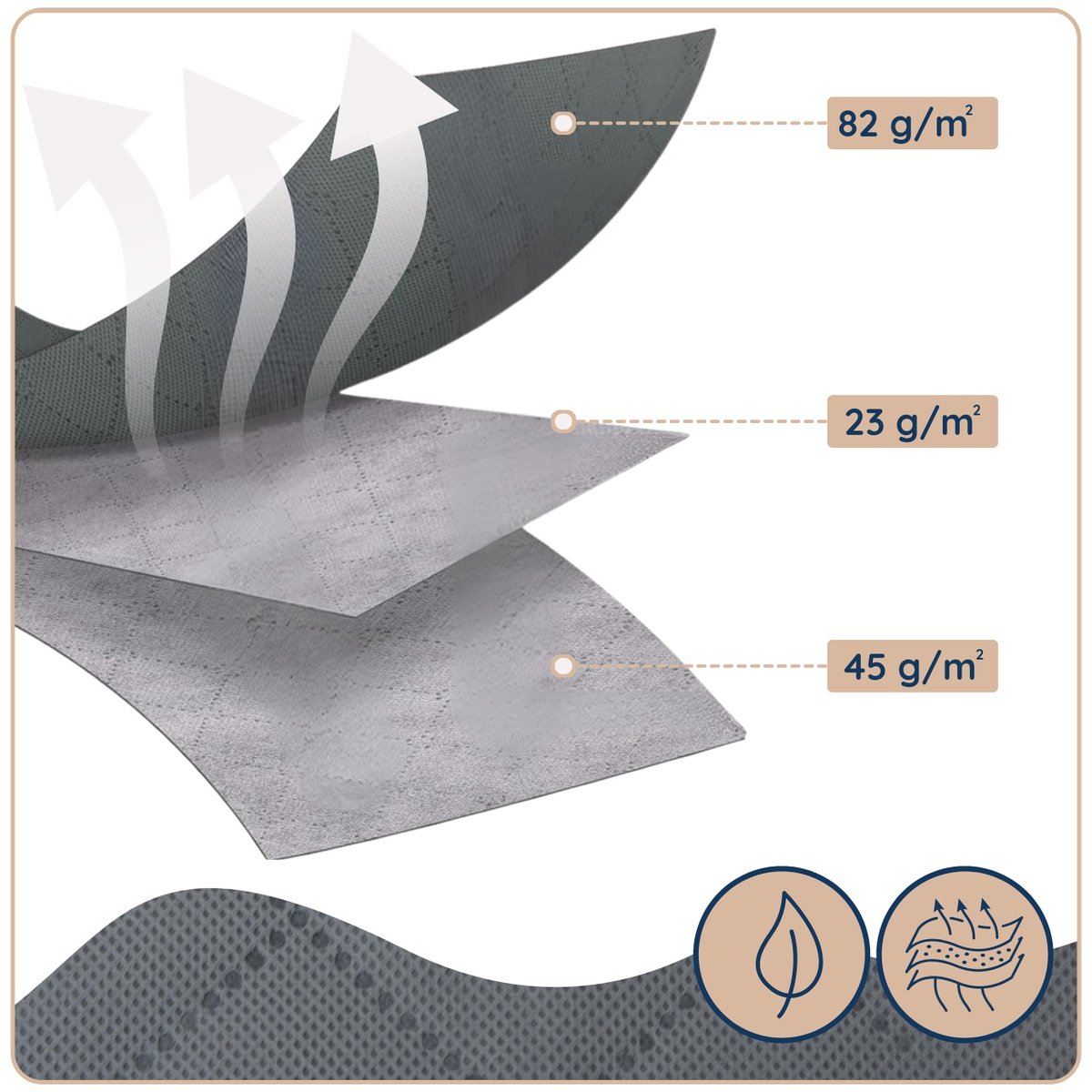 Nasze pokrowce zostały wykonane z bezwonnej, trójwarstwowej włókniny bambusowej, która wyróżnia się większą gramaturą, w porównaniu do podobnych tego typu pokrowców. Jednocześnie zapewnia optymalną cyrkulację powietrza. Dzięki temu, możesz być pewien, że Twoje rzeczy będą chronione przed pleśnią.