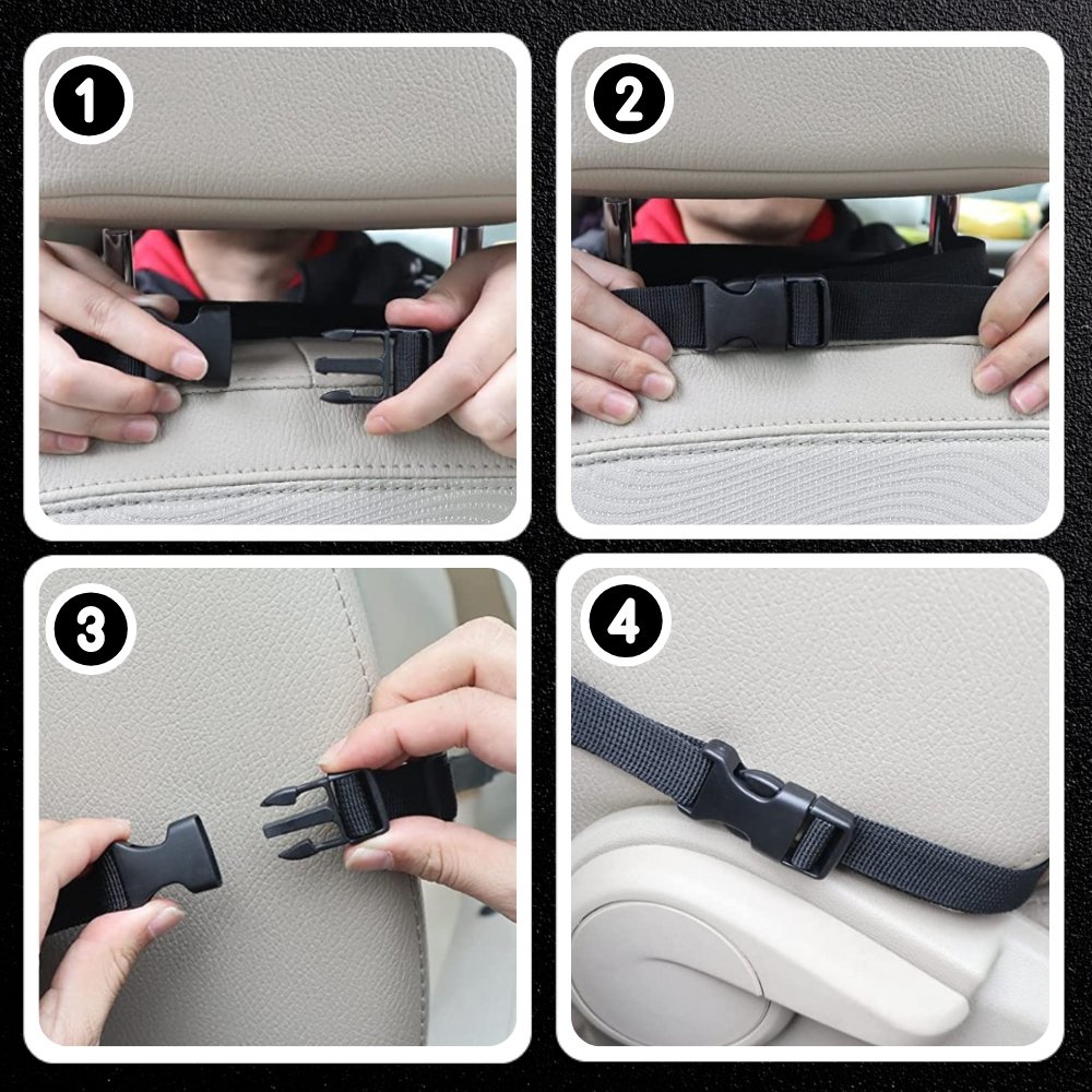 Organizer na tylne siedzenie ma regulowane klamry, śliwkowe klamry, dwa haczyki i wytrzymały pasek, aby zmaksymalizować stabilność schowka na tylnym siedzeniu. Instalacja jest bardzo prosta i zajmuje mniej niż 5 minut.