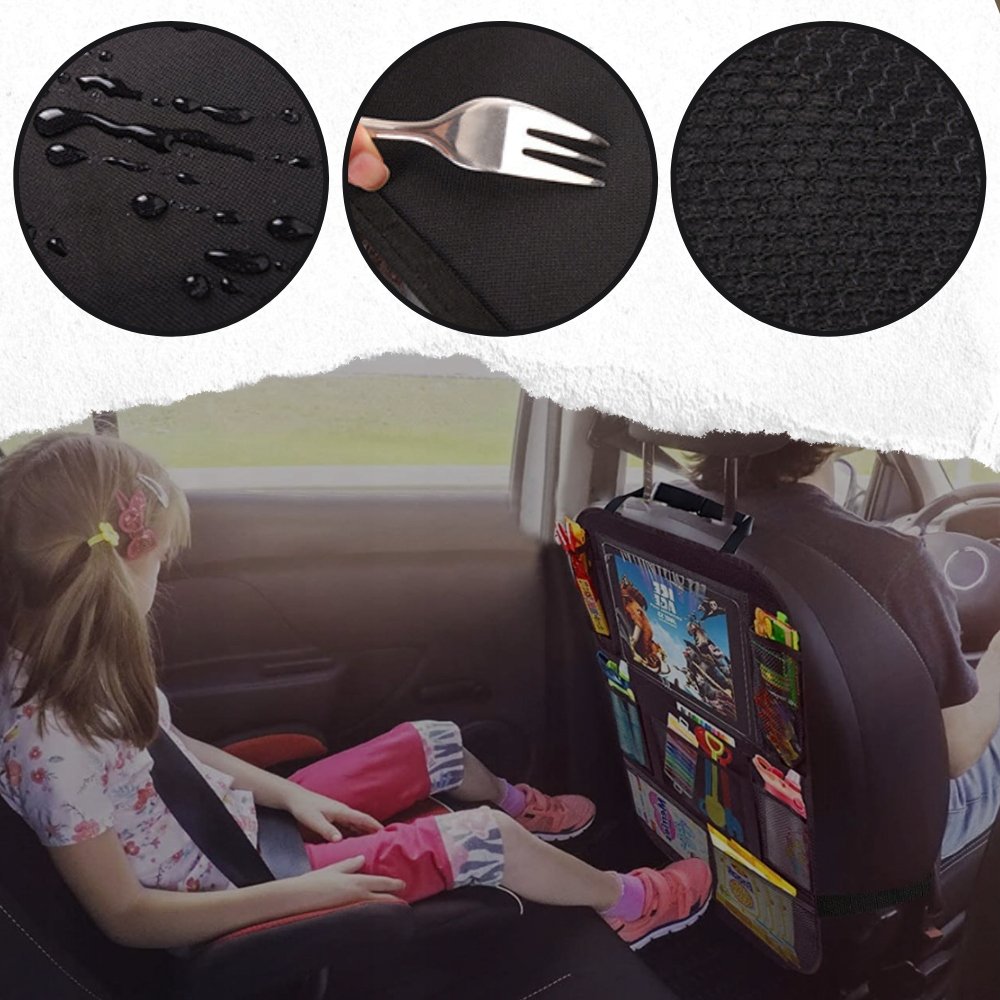 Ten schowek na tylnym siedzeniu dla dzieci może pomieścić tablety. Po prostu odtwarzaj kreskówki lub filmy, aby pocieszyć swoje dzieci. Przezroczysta powierzchnia chroni ekran przed zarysowaniem, wodą i kurzem, jednocześnie umożliwija przewijanie ekranu.