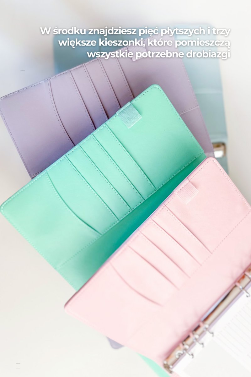 Stwórz organizer o jakim marzyłeś! Masz okazję stworzyć organizer skrojony na miarę Twoich potrzeb. Dzięki naszemu etui możesz “urządzić” swój planner według własnego pomysłu, ponieważ to Ty decydujesz jaki rodzaj wkładów znajdzie się w środku. Etui ma formę segregatora, do którego w osobnej zakładce możesz dokupić odpowiednie wkłady, które pomogą Ci w organizacji. Wewnątrz etui znajdziesz pięć mniejszych kieszonek oraz trzy duże. Segregator bez problemu pomieści 200 kartek (weź to pod uwagę wybierając wkłady)! Dzięki wymiennym wkładom, etui posłuży Ci na długie lata ?? Idealny planner, to taki stworzony przez Ciebie! * Podana cena jest ceną za samo etui, wkłady można dokupić osobno. Wszystkie dodatki do segregatora widoczne na zdjęciu nie są wliczone w cenę, służą do przedstawienia funkcjonalności produktu. DANE TECHNICZNE *Etui w czterech kolorach do wyboru: miętowy, liliowy, różowy i czarny *Wykonane z bardzo miłej w dotyku ekoskórki *Wymiary złożonego etui 23,5 cm x17 cm (zbliżone do formatu A5) *Zamykanie na magnez *Wewnątrz segregator na sześć rzędów – wkłady dobieramy indywidualnie ?? *Etui z przeznaczeniem na maksymalnie 200 kartek *W środku – pięć płytszych kieszonek, oraz trzy większe *Dodatkowo w środku gumeczka na długopis