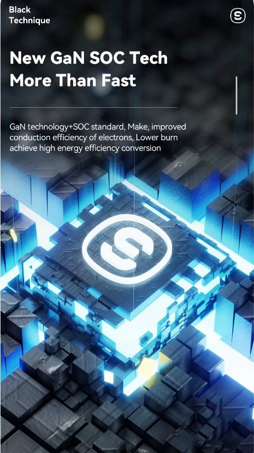 - Technologia GaN: Ładowarka wykorzystuje technologię GaN, dzięki czemu jest mniejsza i bardziej wydajna niż tradycyjne ładowarki,,
