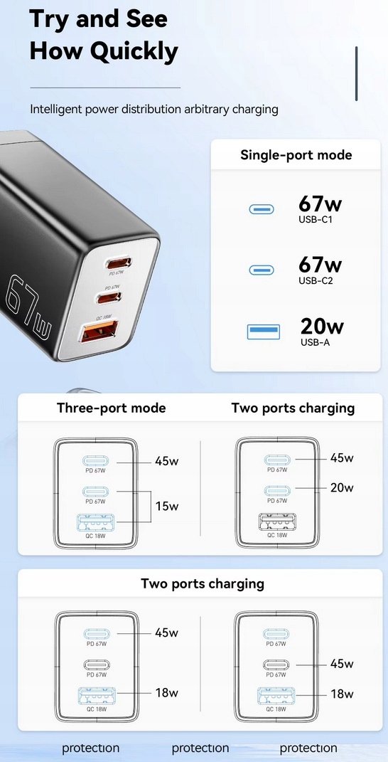 USB-C1+(USB-C2+USB-A): 45W+15W