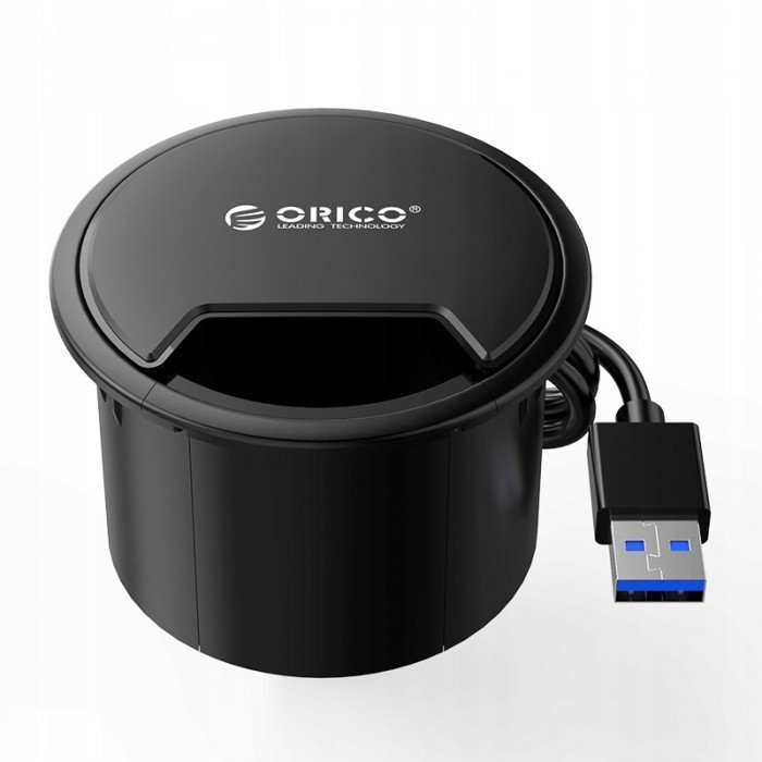 Stwórz ergonomiczne stanowisko pracy lub gry razem z 4-portowym hubem od Orico! Urządzenie zostało zaprojektowane specjalnie do przelotek na kable w biurkach, więc nie zajmuje miejsca na blacie. Okrągły kształt idealnie wpasowuje się w otwory o średnicy 6 cm. Hub do biurka, podobnie jak standardowy przepust kablowy, umożliwia przeciągnięcie kabli od monitora czy innych peryferii.