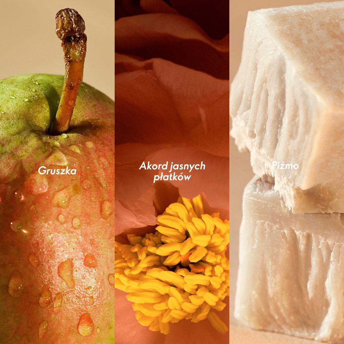 Kremowe ciepło piżma otula skórę, wplatając się w bukiet jasnych kwiatów, których zapach przywodzi na myśl świetlistą, kobiecą energią.
