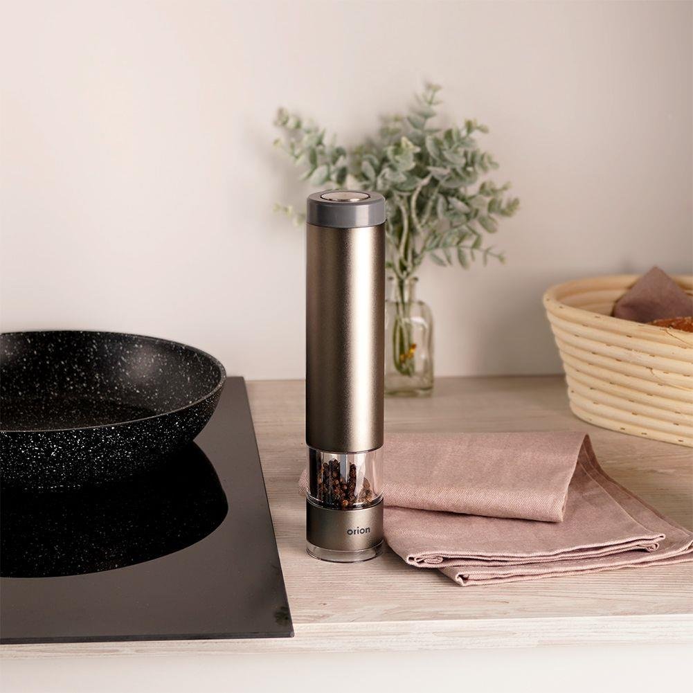 Właśnie zrecenzowałem Młynek elektryczny ORION 130225 - 22,5 cm grafitowy aluminiowy do pieprzu soli przypraw regulacja ceramiczny mechanizm kuchenny