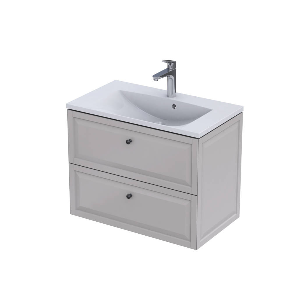 Oristo Szafka pod umywalkę MONTEBIANCO 80 cm piaskowa Szafka pod umywalkę w kolorze piaskowym matowym z dwiema szufladami. Do szafki dołączony adapter do nóżek. Wymiary: Szerokość (cm): 79,6