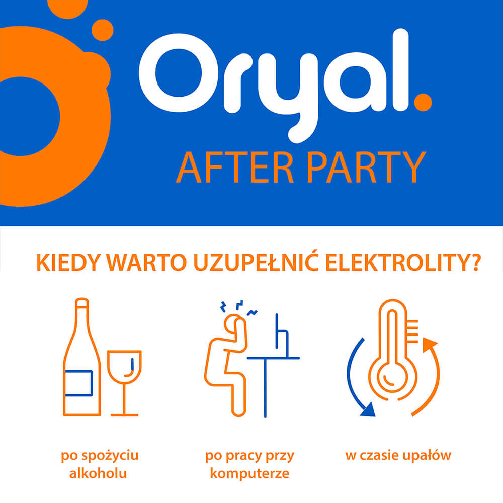 Oryal After Party - suplement diety zawierający składniki dostarczające organizmowi elektrolity. Produkt przeznaczony dla osób dorosłych.