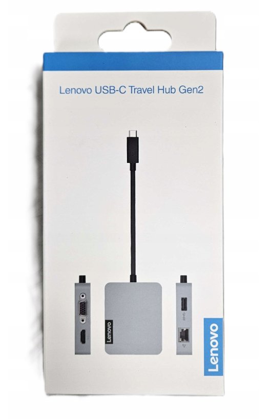 Właśnie zrecenzowałem Oryginalny Hub Lenovo Usb-C Travel Gen2 Usb 2.0 Type-C->Hdmi/Vga/Rj-45/Usb