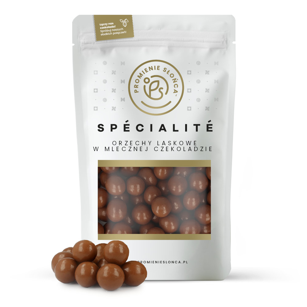 Chrupiące, świeżo prażone orzechy laskowe zostały oblane aksamitną mleczną czekoladą, tworząc duet, któremu trudno się oprzeć. To jedno z najbardziej klasycznych i lubianych połączeń – delikatna słodycz czekolady podkreśla wyrazisty smak orzechów, a całość zachwyca prostotą i elegancją.