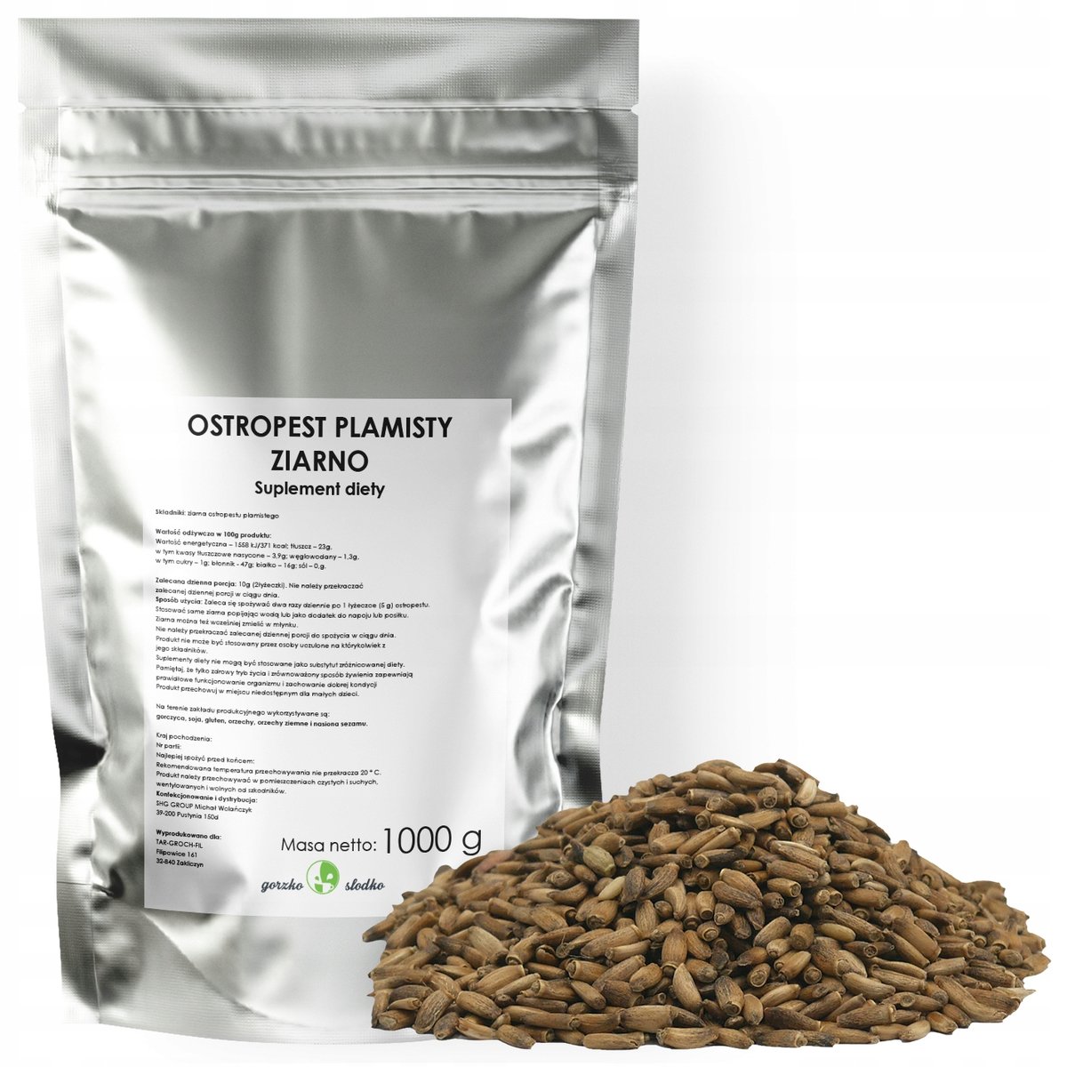 Ostropest plamisty ziarno 1 kg - suplement diety ✅ Zalecana dzienna porcja: 10g (2łyżeczki). Nie należy przekraczać zalecanej dziennej porcji w ciągu dnia ✅ Sposób użycia: Zaleca się spożywać dwa ...