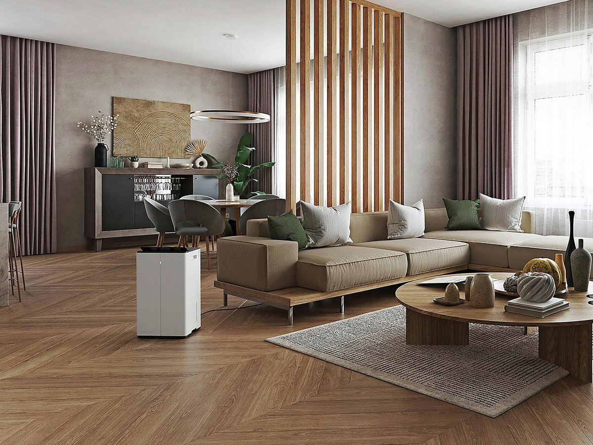 Lucas PRO skutecznie redukuje nadmiar wilgoci (do 50 l/dzień), a dzięki filtrowi HEPA H11 eliminuje z powietrza kurz, pyłki i mikroorganizmy. Zdolność oczyszczania na poziomie 327 m³/h zapewnia szybką wymianę powietrza nawet w bardzo dużych pomieszczeniach.