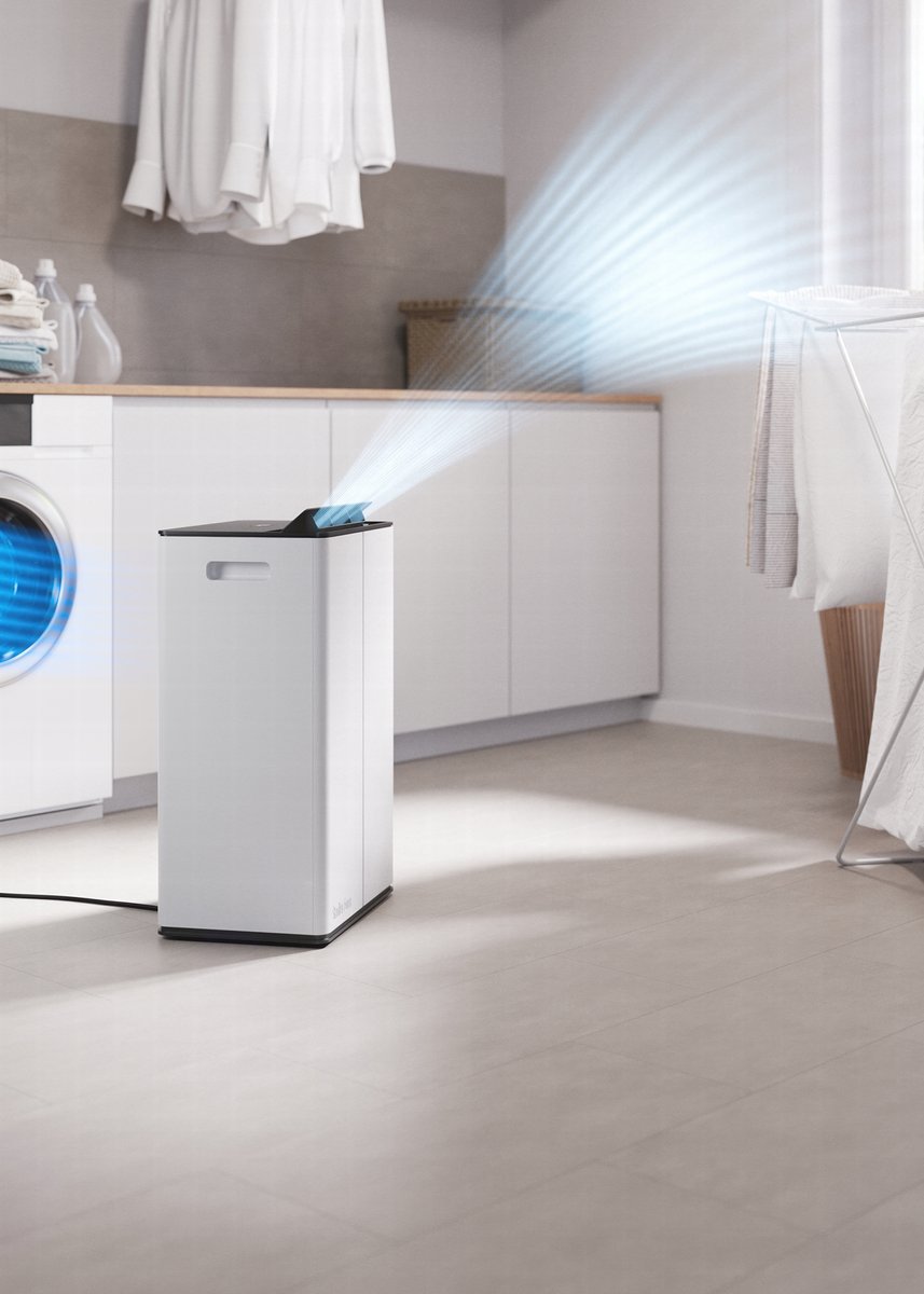 Tryb Laundry Mode przyspiesza suszenie ubrań, a Swing Mode rozprowadza powietrze w pomieszczeniu w sposób równomierny. Funkcja przydatna zwłaszcza w łazienkach, pralniach i pomieszczeniach o podwyższonej wilgotności.