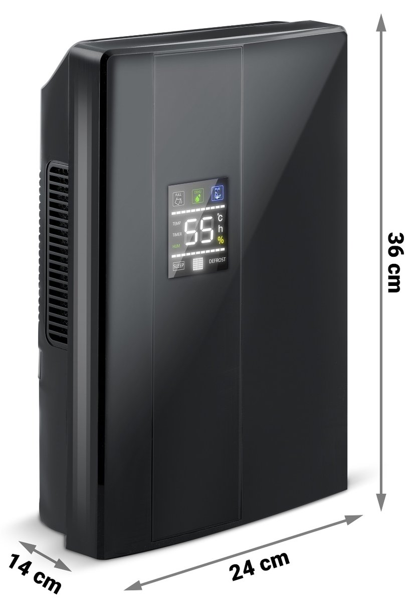 W dodatku pojemność zbiornika na wodę wynosi aż 2 litry, a gdy jest pełny, osuszacz wyłącza się automatycznie, o czym poinformuje Cię zmiana koloru dioda LED.