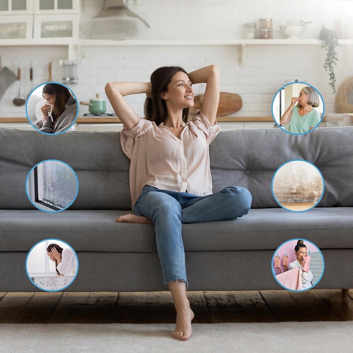Dzięki łączności Wi-Fi masz pełną kontrolę z poziomu smartfona. Ustaw timer, tryb pracy, docelowy poziom wilgotności – gdziekolwiek jesteś. Filtr HEPA-11 oczyszcza powietrze z alergenów, a tryb suszenia prania skraca czas schnięcia odzieży bez podnoszenia wilgotności w mieszkaniu.