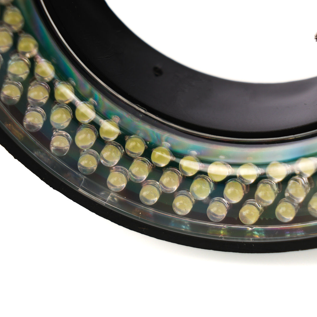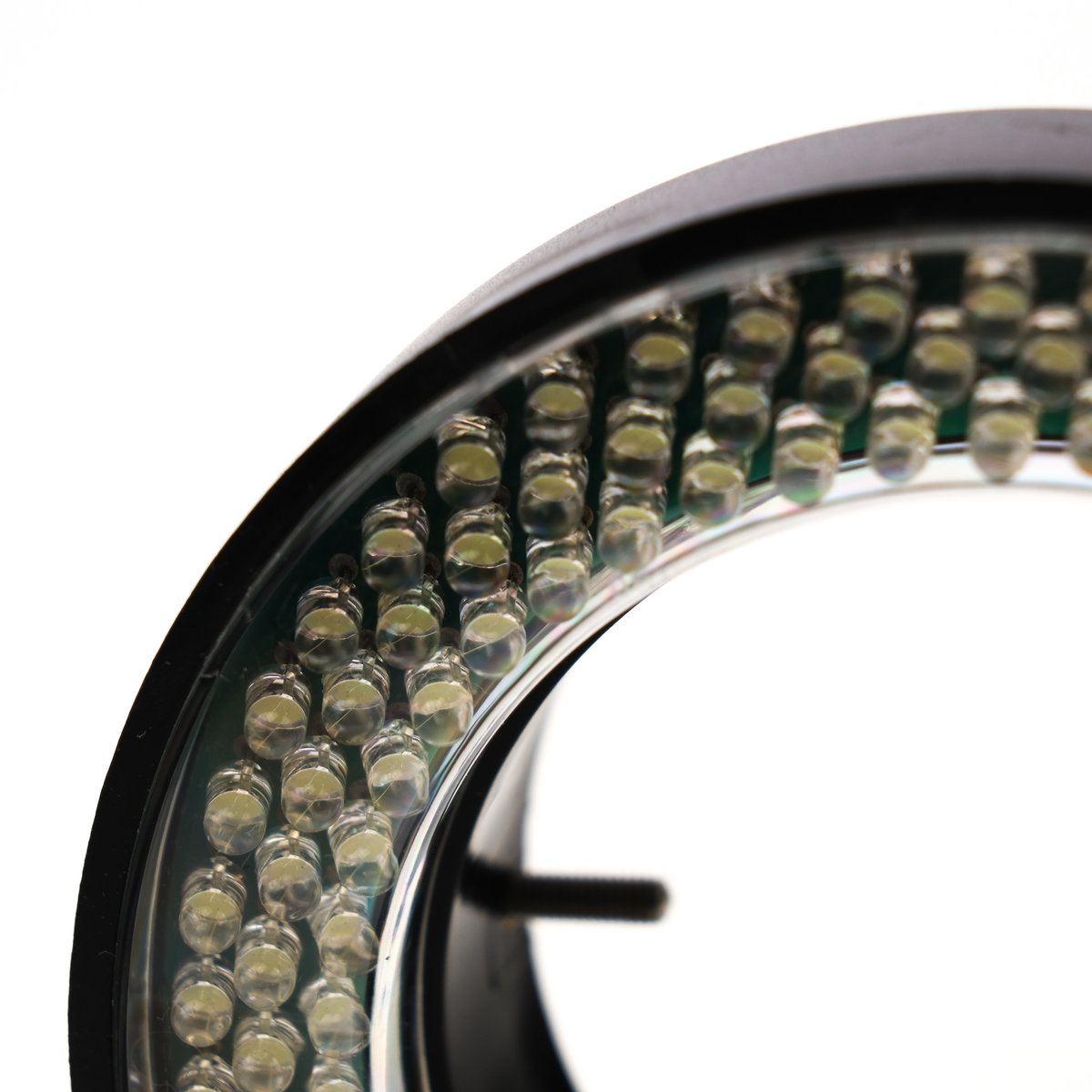 - Regulowana Średnica Pierścienia: Średnica pierścienia wynosząca 60 mm wewnątrz oraz 95 mm na zewnętrznej stronie jest regulowana poprzez docisk śrub. Dzięki temu można dostosować oświetlenie do różnych rozmiarów mikroskopów.