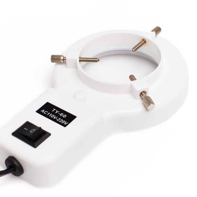 Źródło światła mikroskopu z diodami LED. Światło pierścieniowe 20x LED Jego wymiary montażowe wynoszą do 60 mm Średnica pierścienia ma odpowiednio 60mm wewnątrz i 95 mm od zewnętrznej średnicy i działa z zasilaniem napięciem szerokopasmowym od 100 V do 240 V.