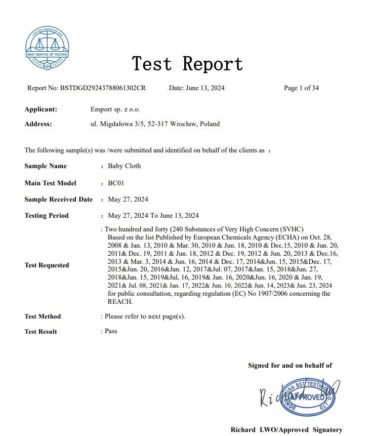 Aby mieć pewność, że otulacz spełnia nasze wymagania przebadaliśmy go na obecność substancji chemicznych wg. listy SVHC ( Rozporządzenie REACH Unii Europejskiej ). Nasz otulacz badania zaliczył, zatem mamy potwierdzenie, że jest bezpieczny!