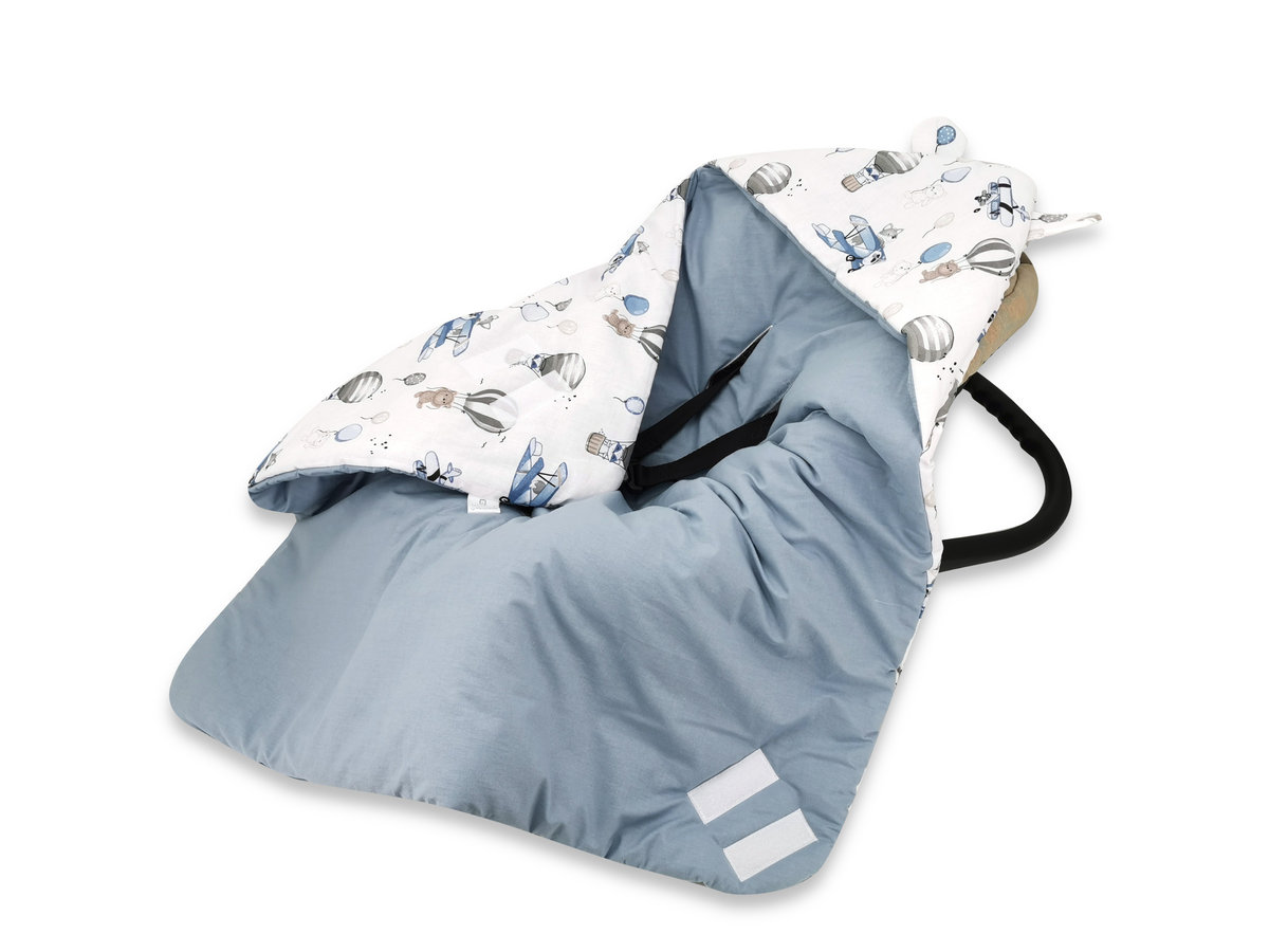 Otulak / Kocyk do wózka, fotelika samochodowego z kapturkiem 90x90 cm VELVET + BAWEŁNA 100%