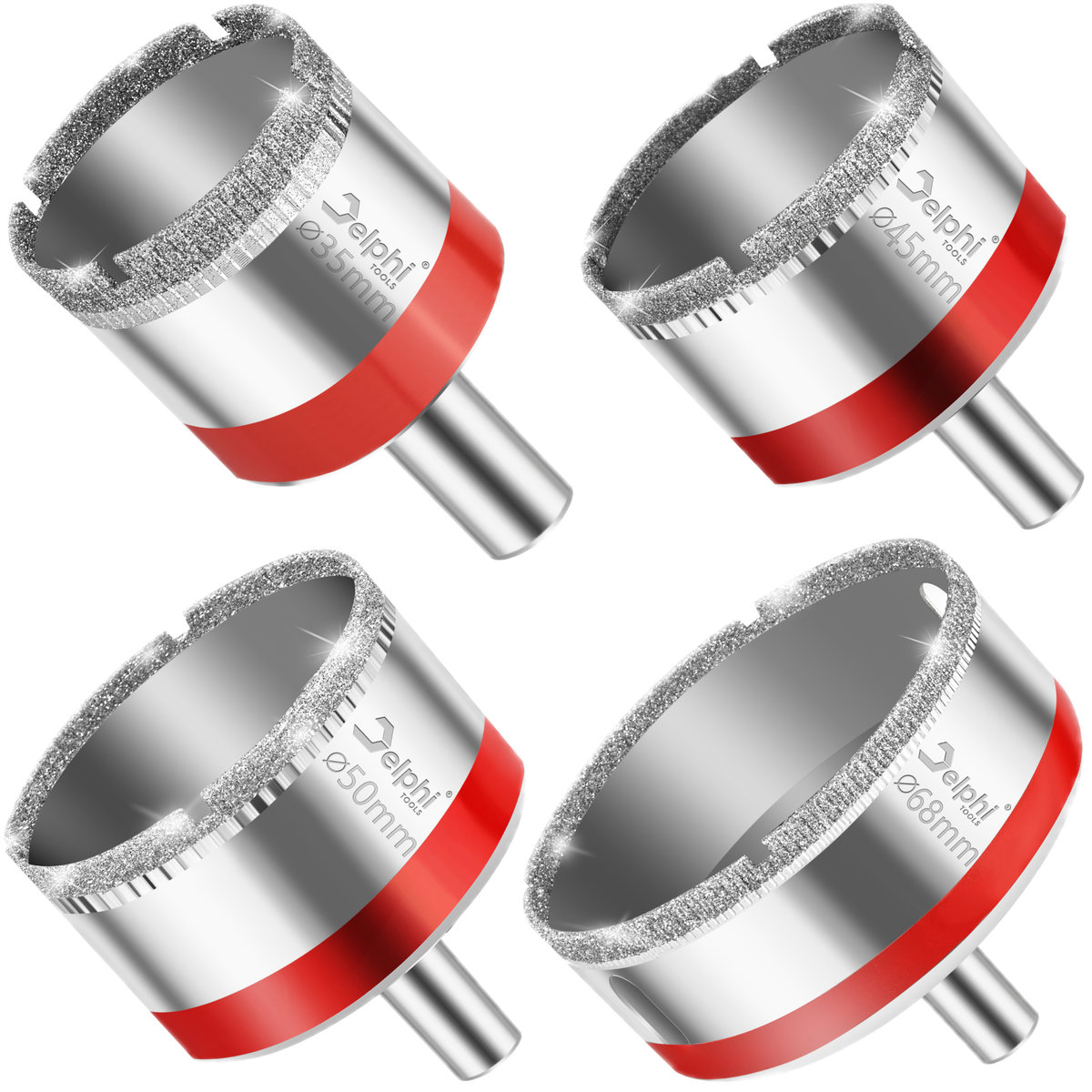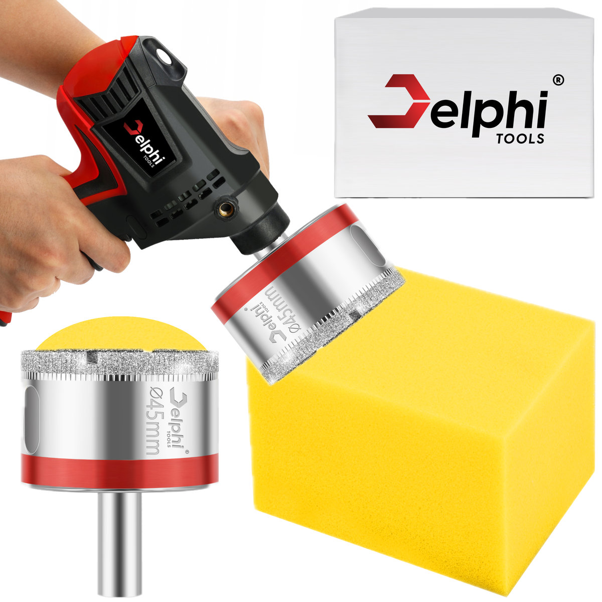 Delphi TOOLS ® ⭐⭐⭐⭐⭐ZESTAW 10 sztuk OTWORNIC Z DIAMENTAMI osadzonymi w PROCESIE GALWANIZACJI ✔️ 1x GĄBKA CHŁODZĄCA - niezbędna do stosowania na MOKRO ✔️10 szt. ⌀ 6,8,10,16,20,28,35,45,50,68 mm ...