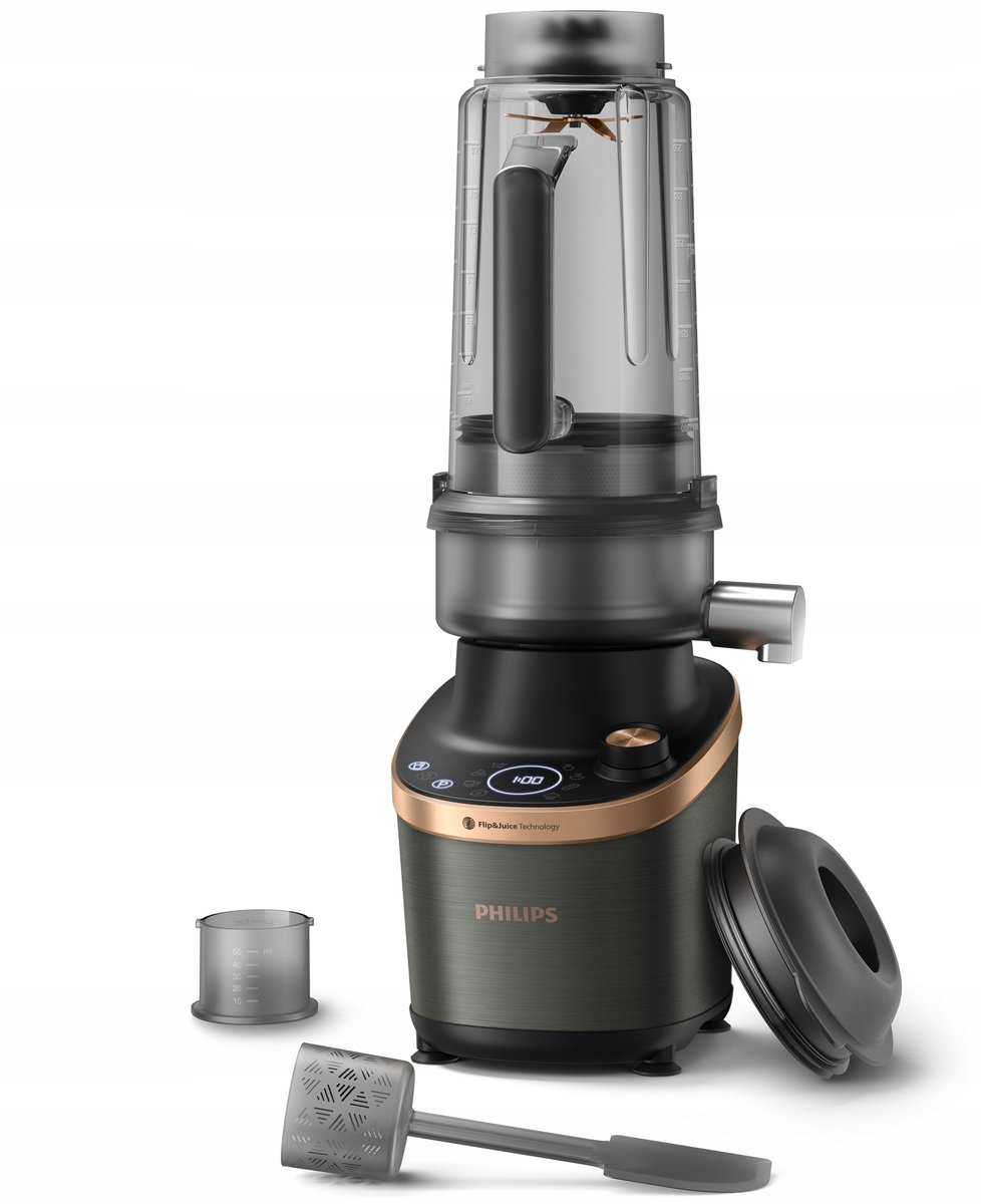 Blender wysokoobrotowy z modułem sokowirówki. Zmiksuj, odwróć, sok. Nowy blender HR3770/00 Flip&Juice™ firmy Philips z rewolucyjną konstrukcją dzbanka i zintegrowanym systemem filtrów umożliwia przygotowywanie klarownych soków o gęstej konsystencji obok jedwabistych koktajli i masła orzechowego w kawałkach. Uszczęśliw swoją rodzinę dzięki najwyższej różnorodności tekstur.