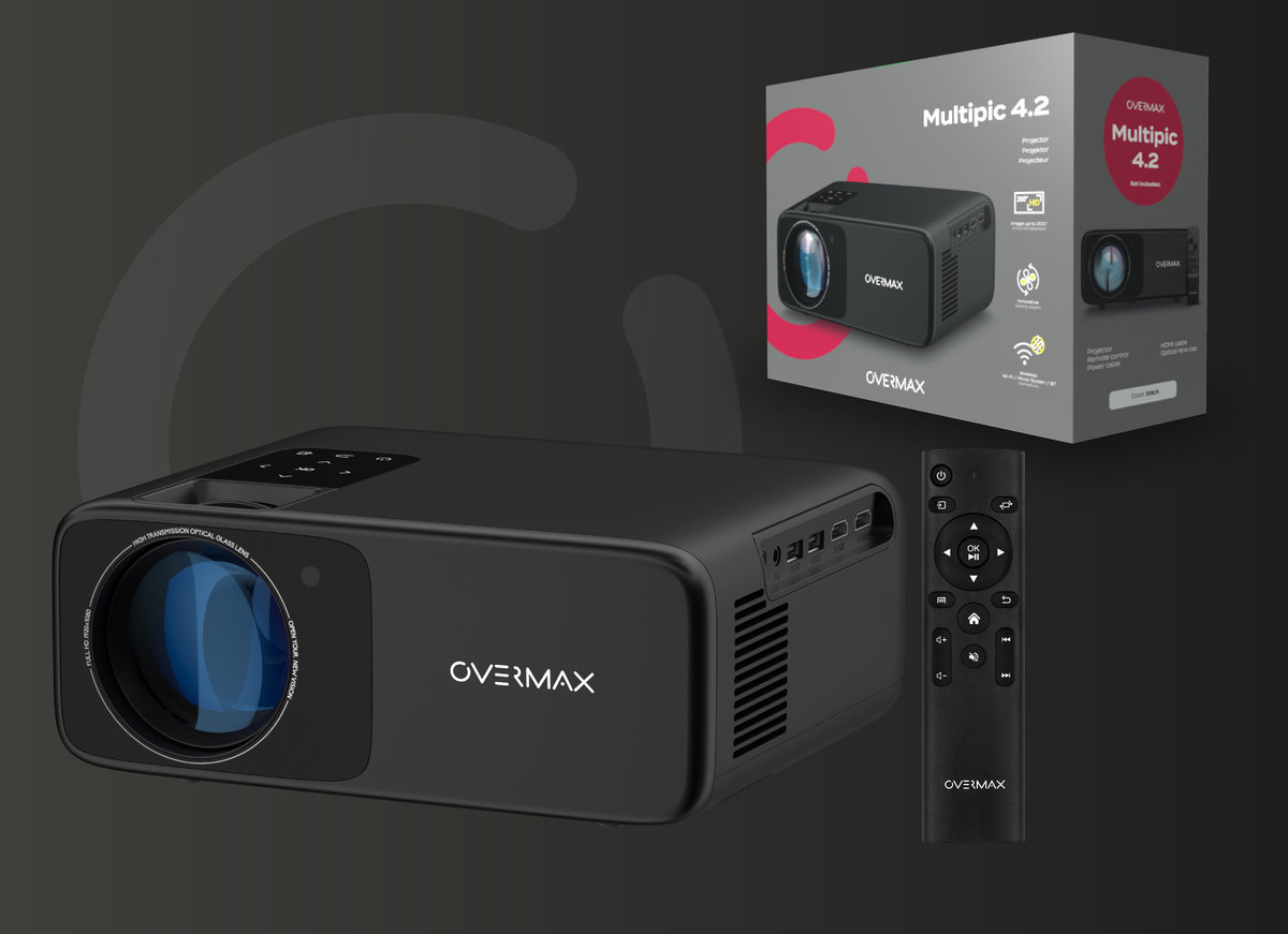 Overmax Multipic 4.2 został wyposażony w intuicyjny panel w obudowie, za pomocą którego sprawnie uruchomisz film lub prezentację. W obsłudze zdalnej doskonale sprawdzi się dołączony do zestawu pilot, a łączność Wi-Fi w paśmie 2,4Ghz oraz 5Ghz umożliwi Ci bezpośrednie odtwarzanie plików ze smartfona lub komputera. W zestawie otrzymasz przewód HDMI, więc nie potrzebujesz nic więcej do tego, aby cieszyć się filmem na dużym ekranie od razu po rozpakowaniu i podłączeniu rzutnika.
