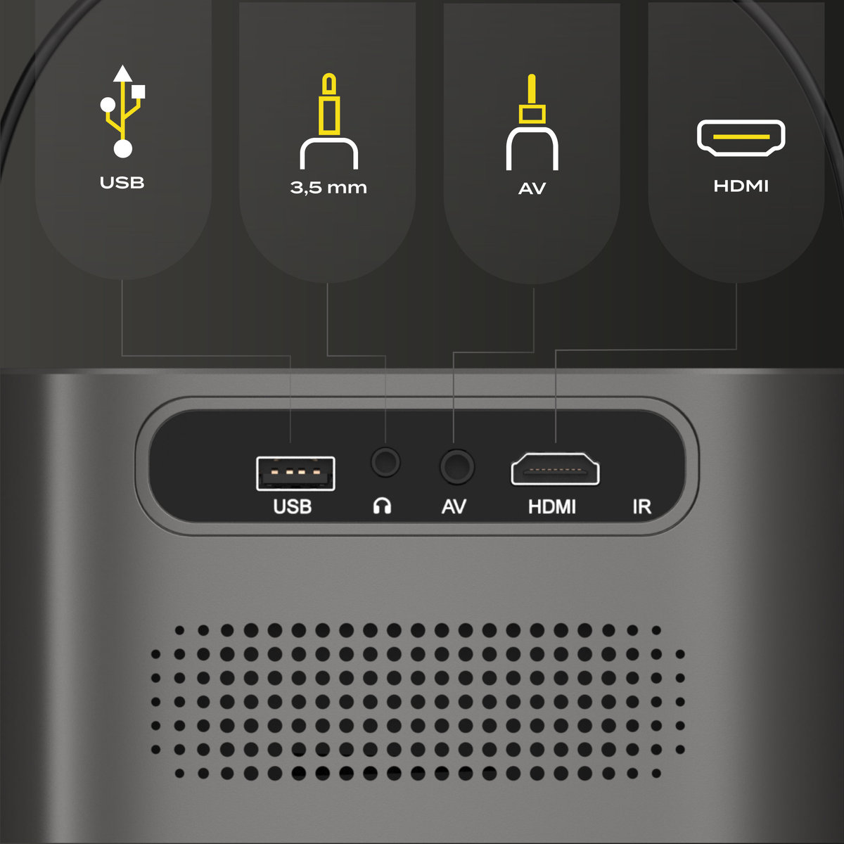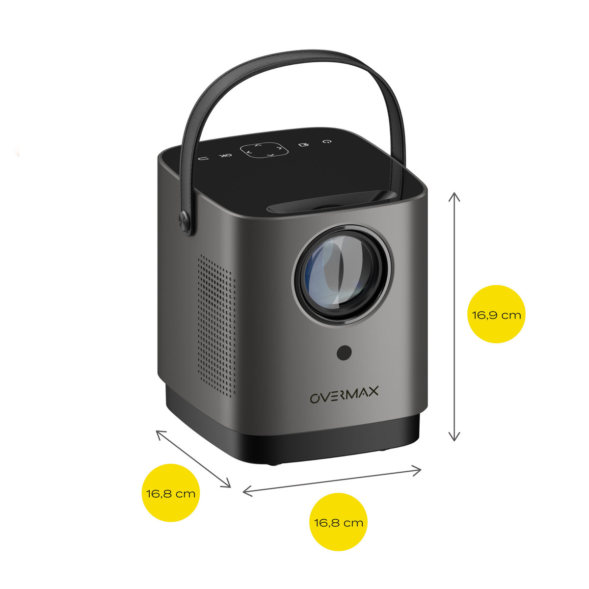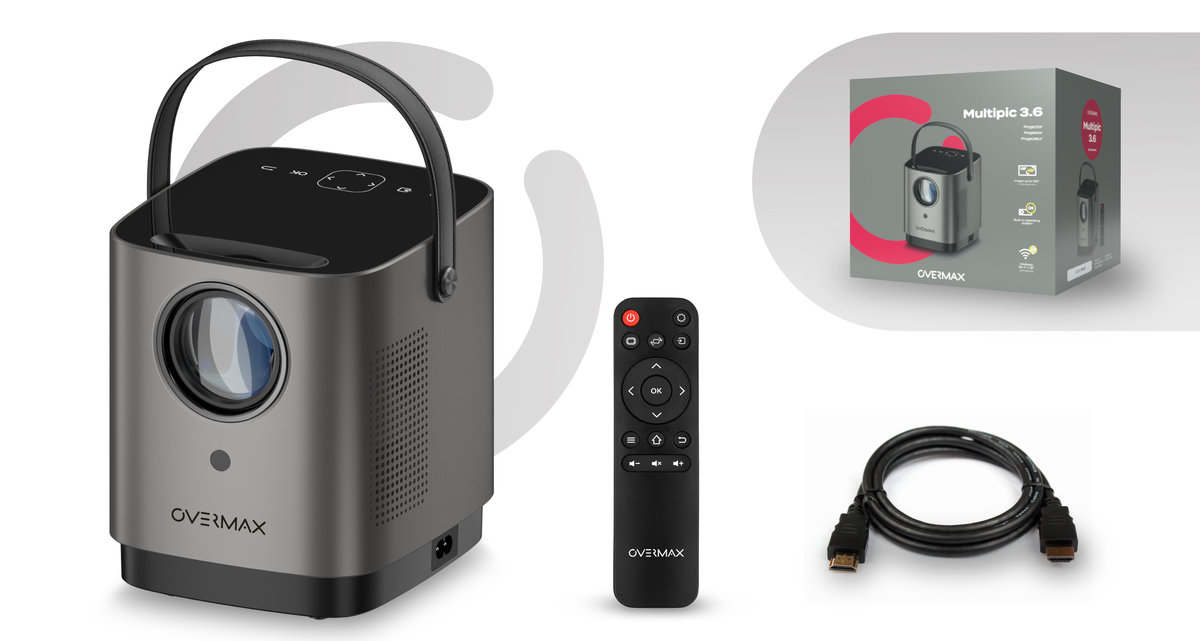 Za pomocą pilota lub przy użyciu panelu dotykowego na obudowie – na dwa sposoby możesz kontrolować wyświetlane obrazy. Kompaktowy rozmiar, oryginalny kształt i wygodny uchwyt do przenoszenia sprawiają, że rzutnik Overmax Multipic 3.6 zabierzesz ze sobą wszędzie, np. możesz wykorzystać go podczas przyjęcia w ogrodzie. Liczne gniazda wejściowe (HDMI, USB, AV, AUDIO OUT, IR) dają wiele możliwości jego użytkowania. Do zestawu dołączony jest przewód HDMI. Postaw projektor w wybranym miejscu (1,1 – 5 m odległości od ściany lub ekranu) i baw się dobrze podczas seansu!