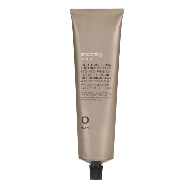 Oway Smooth+ Smoothing Cream to wygładzający termoochronny krem do włosów. Produkt bez spłukiwania doskonale dyscyplinuje włosy grube, ciężkie, puszące i falowane. Produkt jest wegański, nietestowany