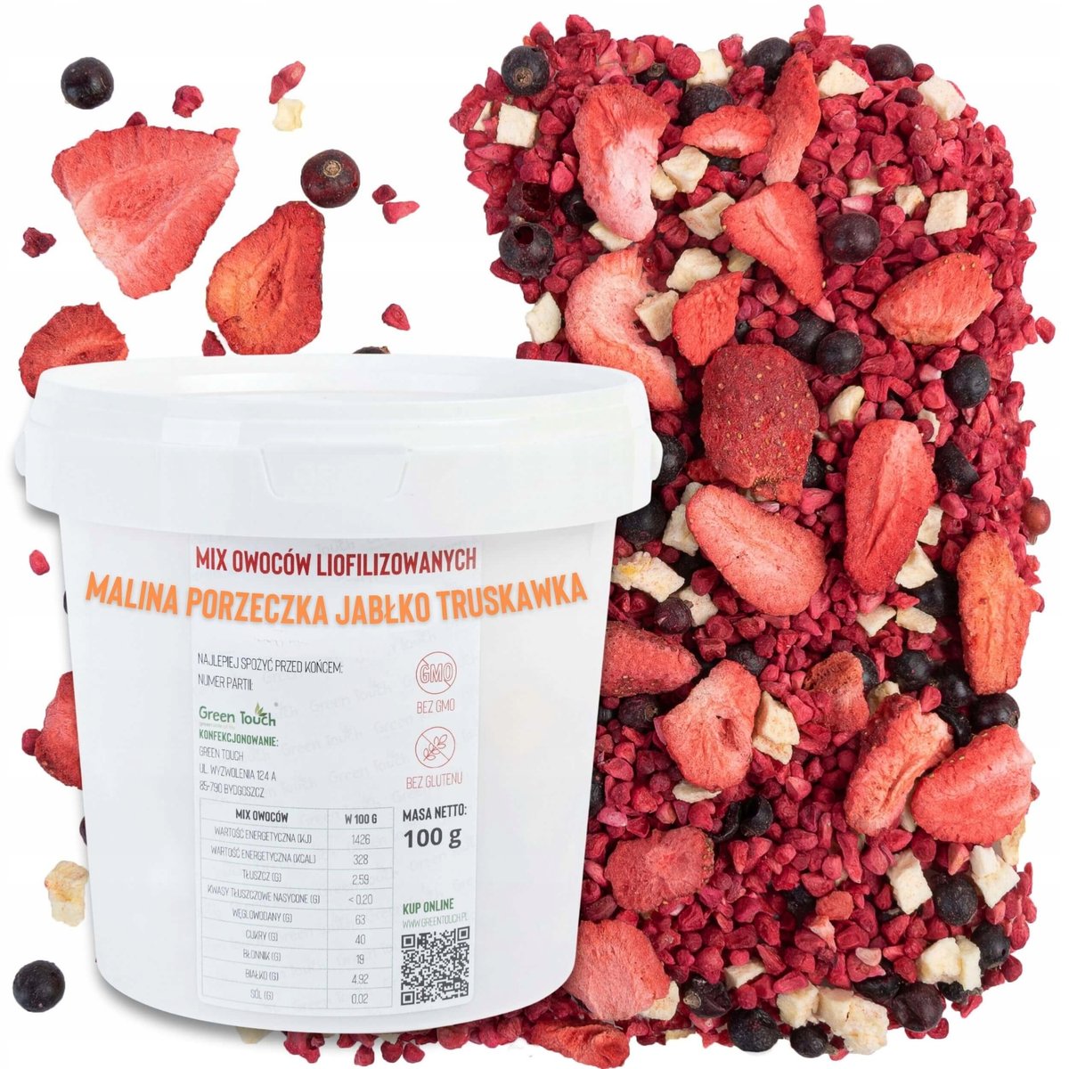 | Nazwa: | Owoce Liofilizowane Zestaw Mix Malina Porzeczka Jabłko Truskawka 100 G |