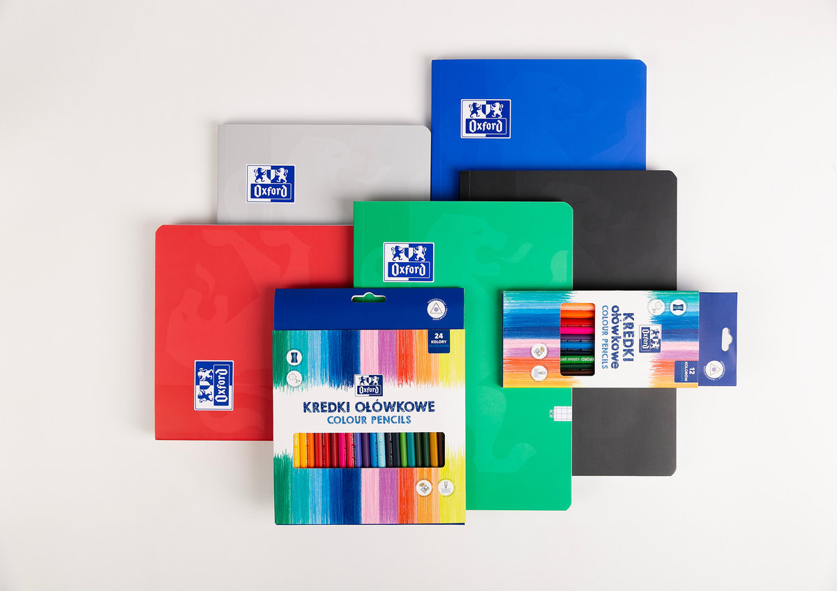Kolekcja Oxford Esse to okładki w 5 klasycznych, a jednocześnie unowocześnionych kolorach. Podstawowe barwy, takie jak niebieska czy zielona, zostały przedstawione z myślą o obecnych trendach kolorystycznych. Dzięki temu w zestawie można znaleźć ponadczasową czerń oraz elegancką butelkową zieleń. Kolekcja dedykowana jest szerokiej grupie wiekowej uczniów, więc zeszyty i bruliony występują w dużej ilości formatów i ilości kartek.