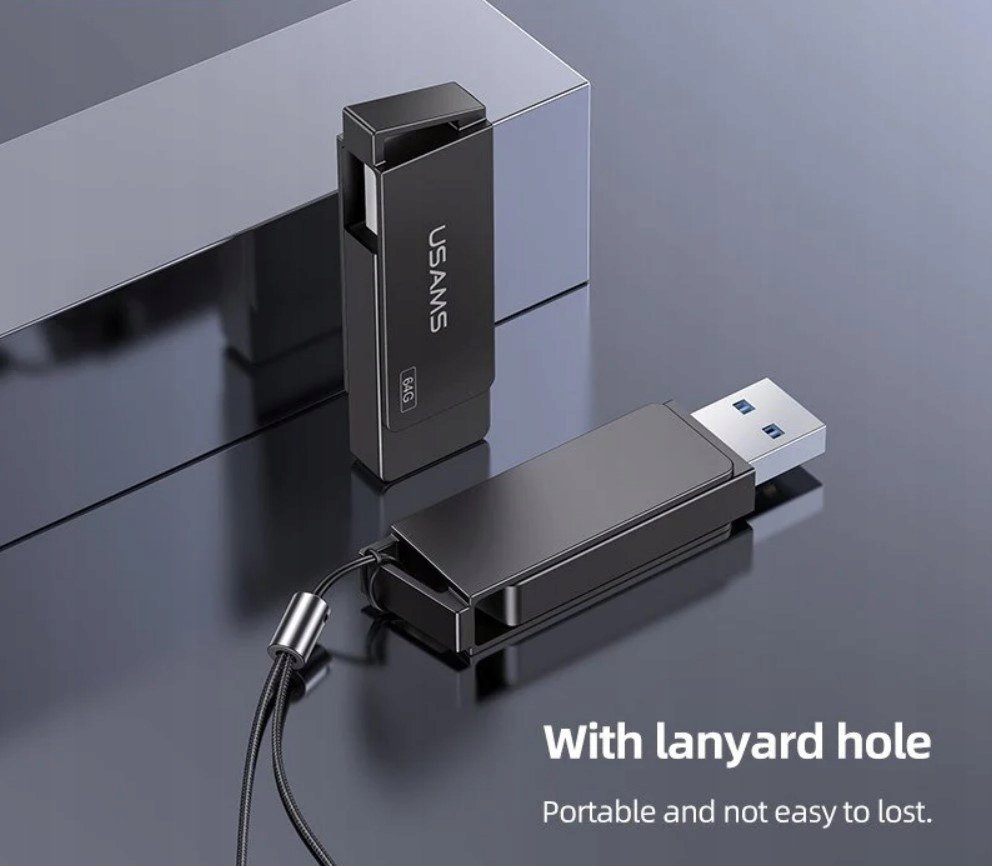 Dzięki wysokiej prędkości transferu danych, jaką oferuje interfejs USB 3.0, błyskawicznie przeniesiesz pliki między urządzeniami. Innowacyjny obrotowy design sprawia, że dostęp do złączy Type-C i USB 3.0 jest niezwykle prosty i wygodny. Wykonany z trwałego stopu cynku, ten pen drive jest nie tylko funkcjonalny, ale i estetyczny.